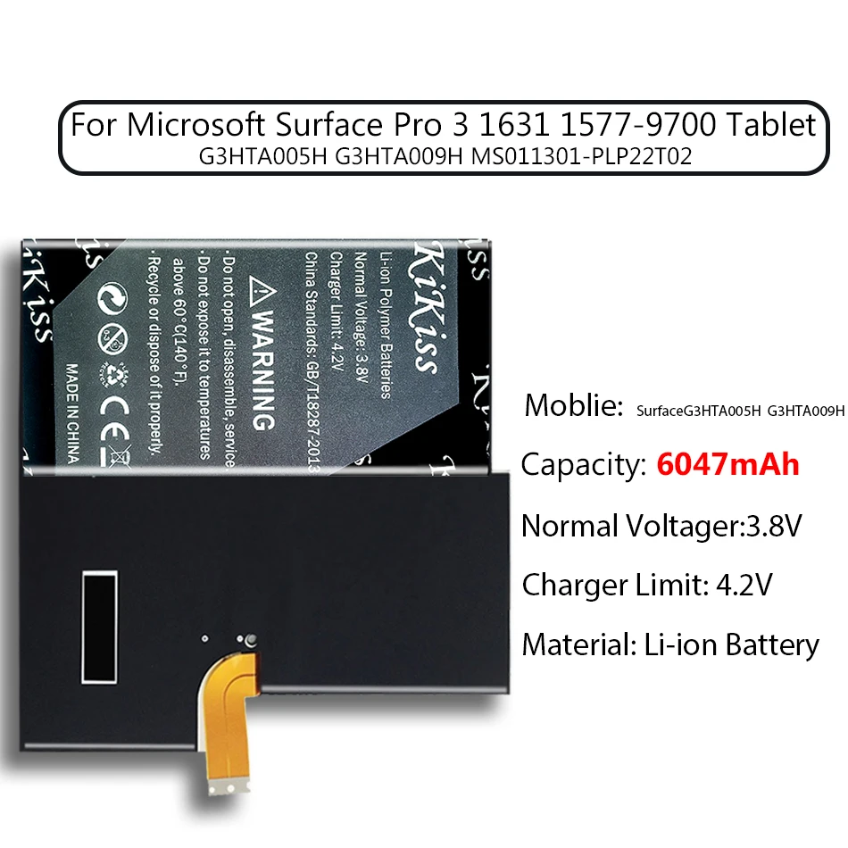 KiKiss G3HTA005H G3HTA009H MS011301-PLP22T02 Аккумулятор для ноутбука MICROSOFT SURFACE PRO 3 1631 1577-9700 планшеты с инструментами