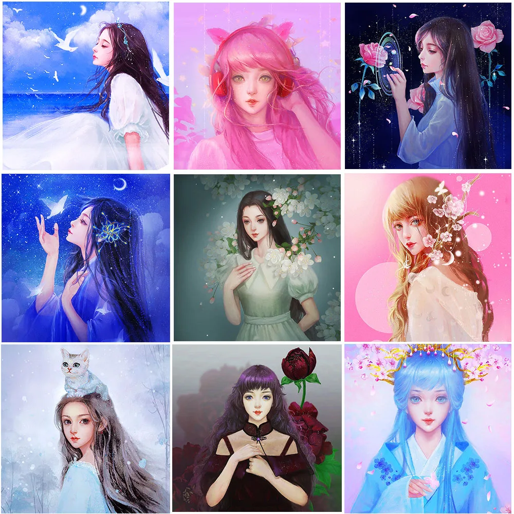 5D алмазная живопись, портрет мультяшной девушки, Полный алмаз, ква...
