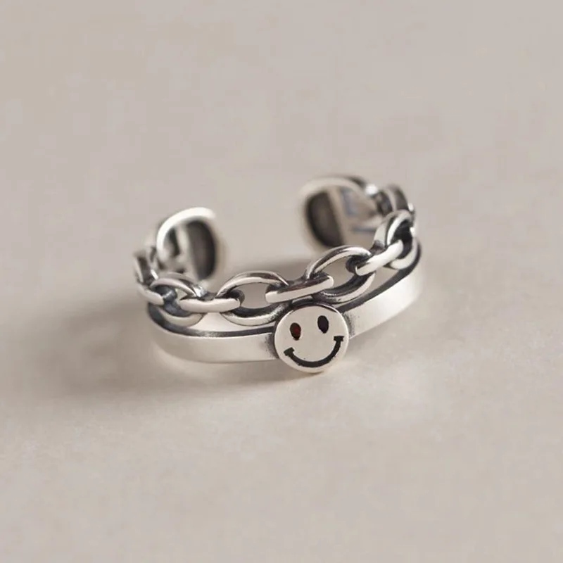 Кольца в винтажном стиле, цепочка со смайликом, открытые одиночные кольца для мужчин и женщин, блестящие регулируемые ювелирные изделия в стиле панк для вечеринок