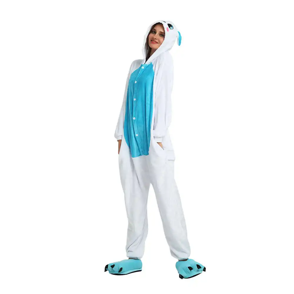 Пижама с милыми животными, костюм с синим Кроликом, комбинезон с капюшоном, детский комбинезон, кигуруми, женская одежда для сна, ночная рубашка