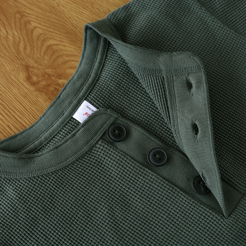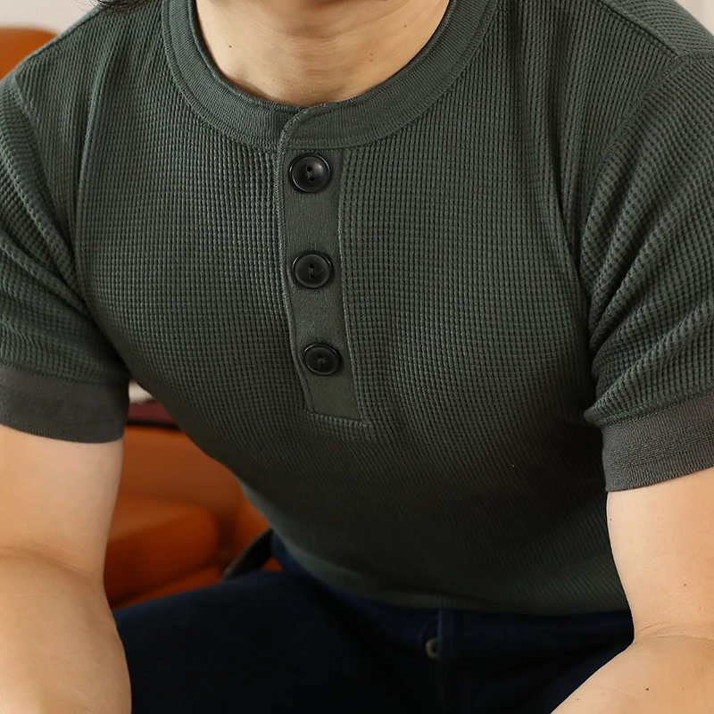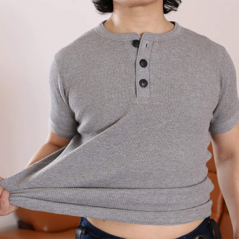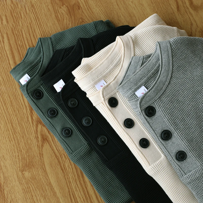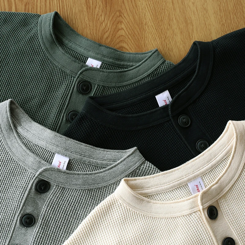 AL6113, Азиатский Размер, 10,5 гм2, унции, Повседневная футболка Хенли, хлопковая супергибкая футболка с вафельным узором, 4 цвета