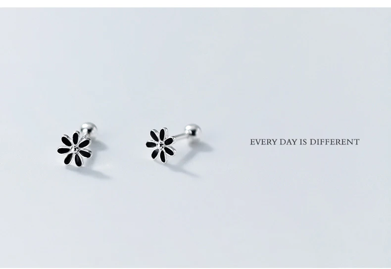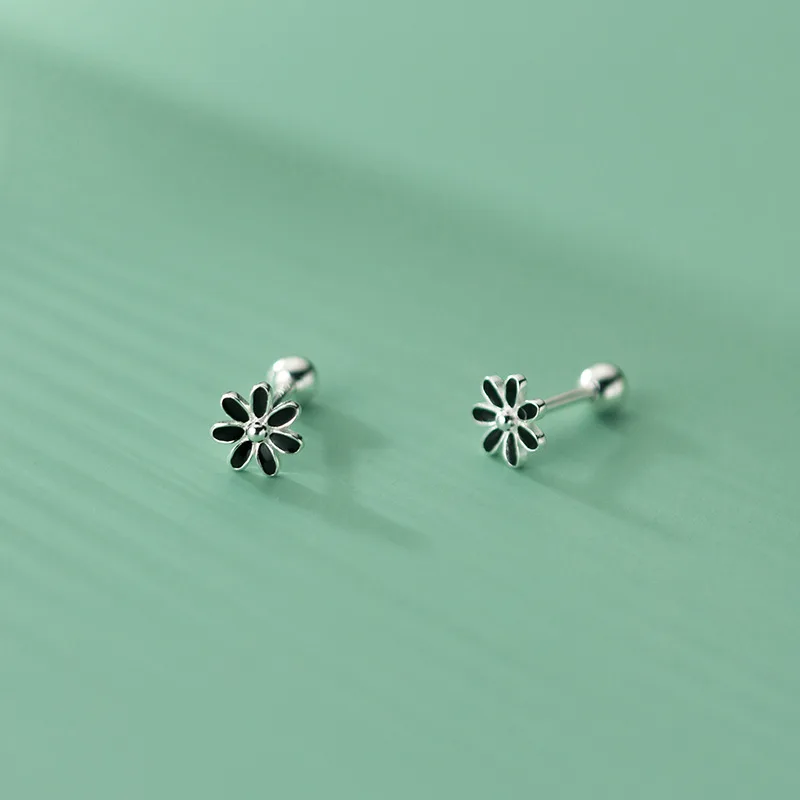 Женские маленькие серьги-гвоздики La Monada из стерлингового серебра 925 пробы с черным цветком, корейские серьги из серебра 925 пробы, ювелирное изделие