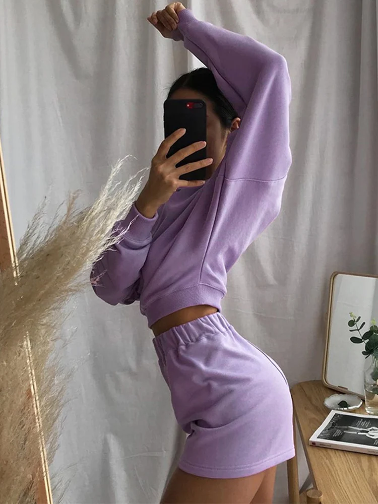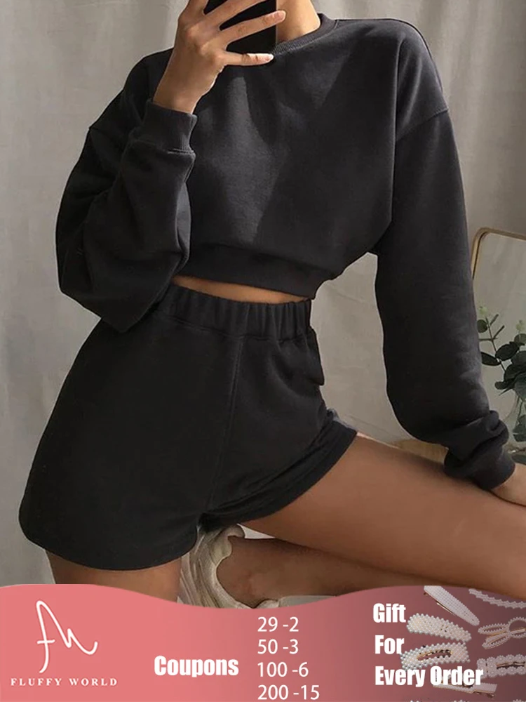 Название бренда: Fluffy WorldМатериал: хлопок 30%-50%Сезон: Весна/Лето/ОсеньТип товара: толстовки/шорты/комплект с шортами/спортивный костюмСтиль: Повседневный, короткий, спортивный комплект для велоспортаВоротник: круглый вырезРазмер: S M LТип рукава: длинный рукавТип брюк: шорты