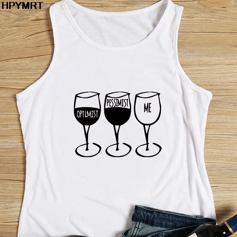 Майка женская без рукавов с круглым вырезом и принтом винного вина