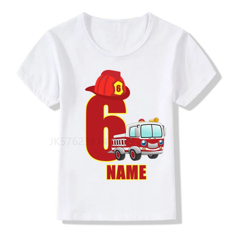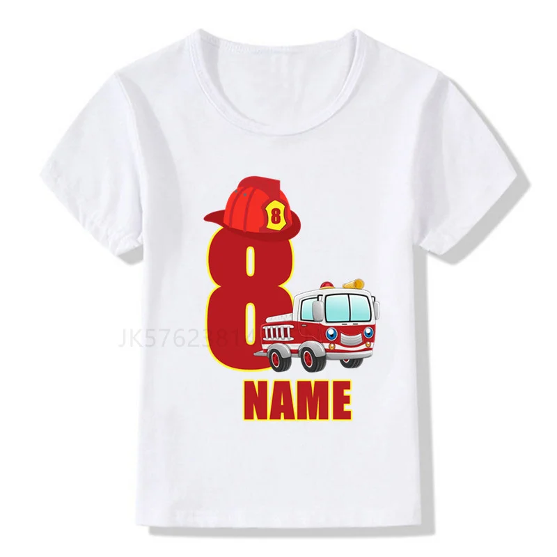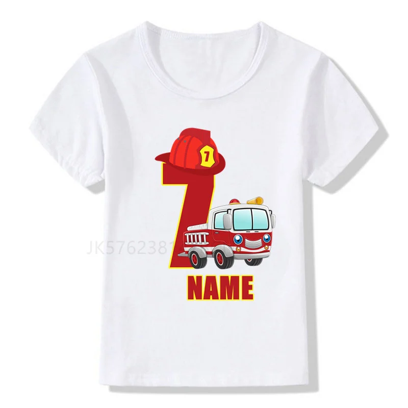 Футболка белая для мальчиков и девочек, с цифрами и пожарным, на день рождения, 1-9 лет