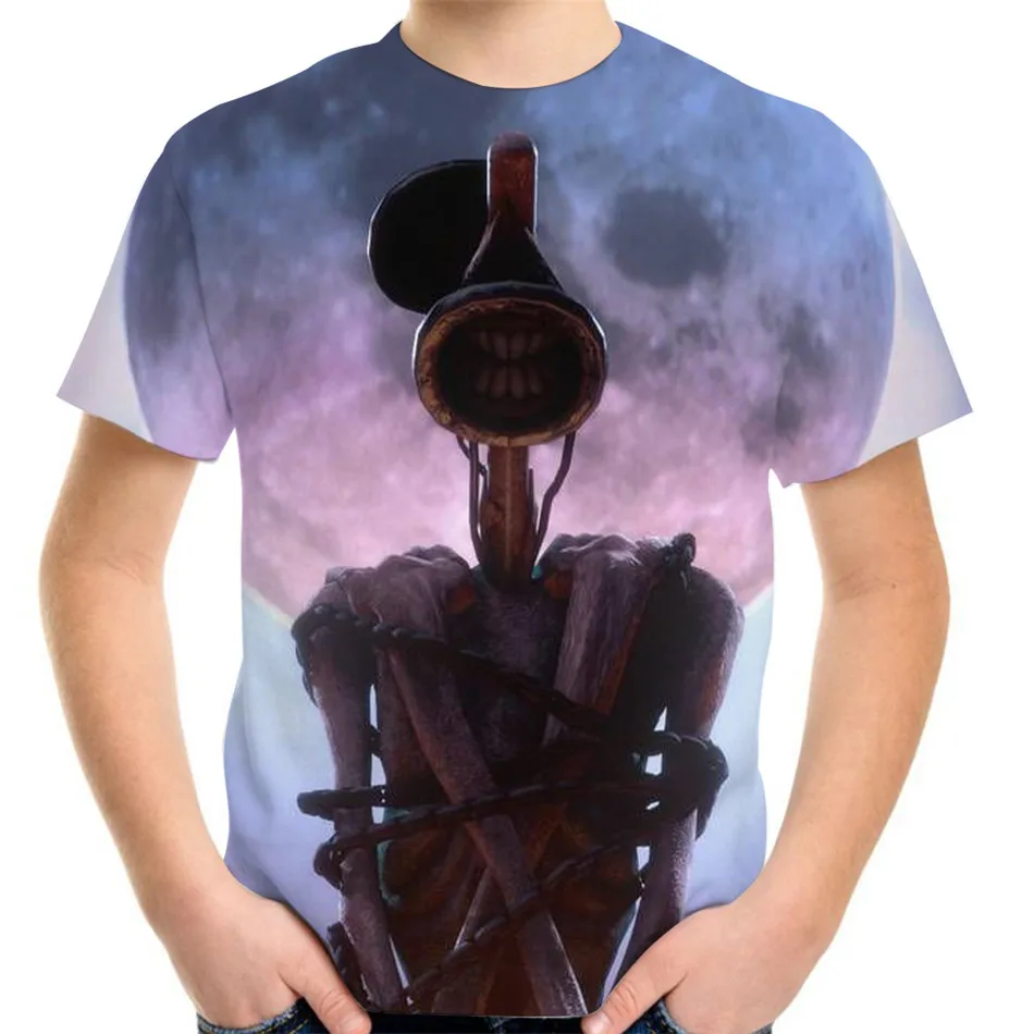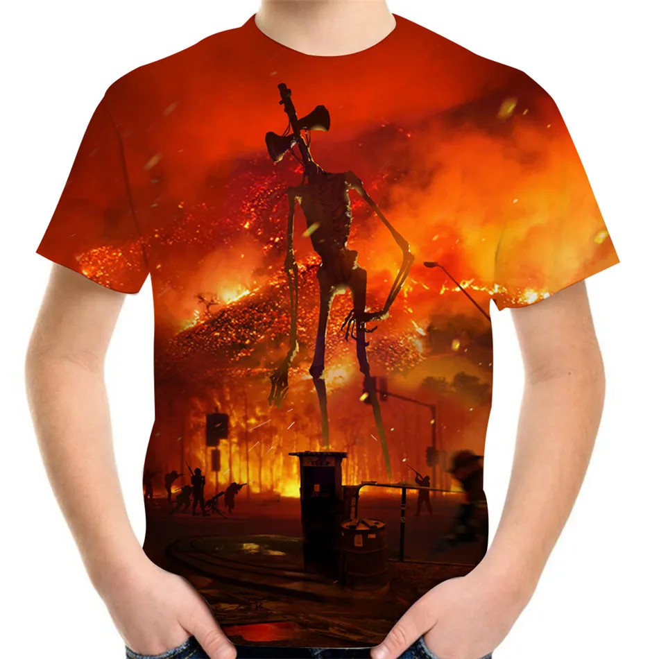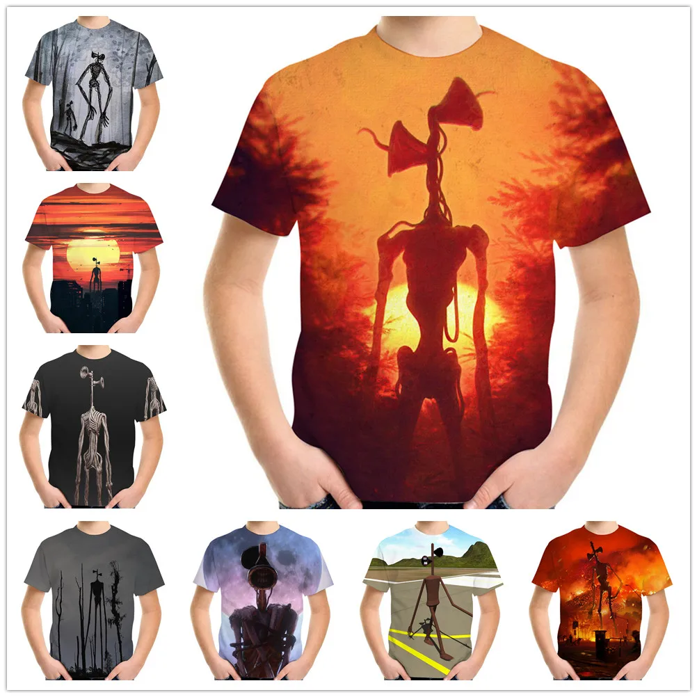 Ужасная футболка SCP с 3D-принтом головы сирены для девочек и мальчиков, уличная одежда, детские Мультяшные футболки, летняя детская аниме одежда на день рождения