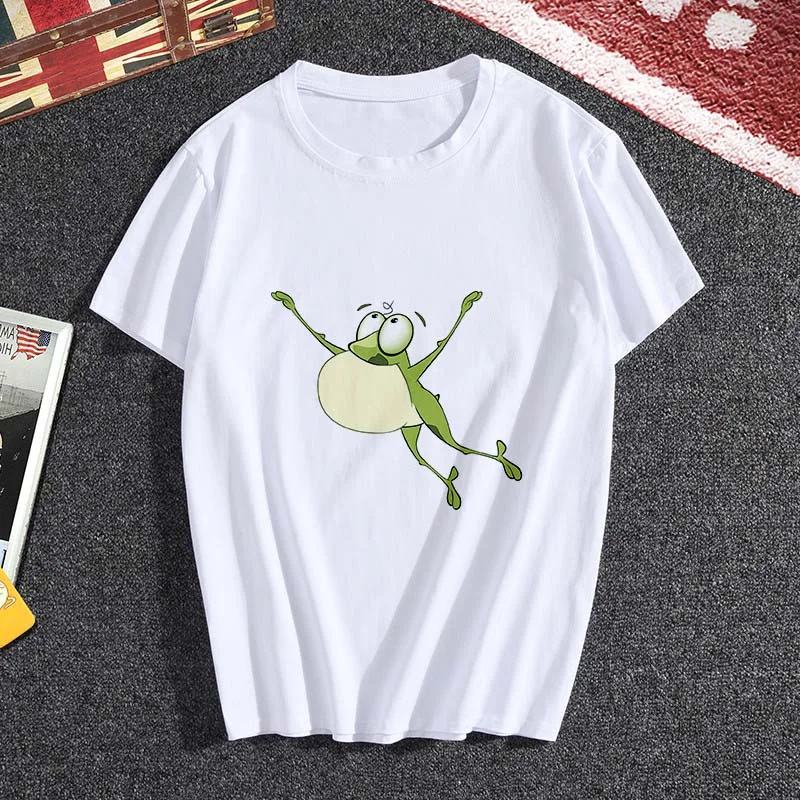Футболка женская с принтом в виде лягушки, милая забавная рубашка в стиле хип-хоп, топ унисекс с короткими рукавами