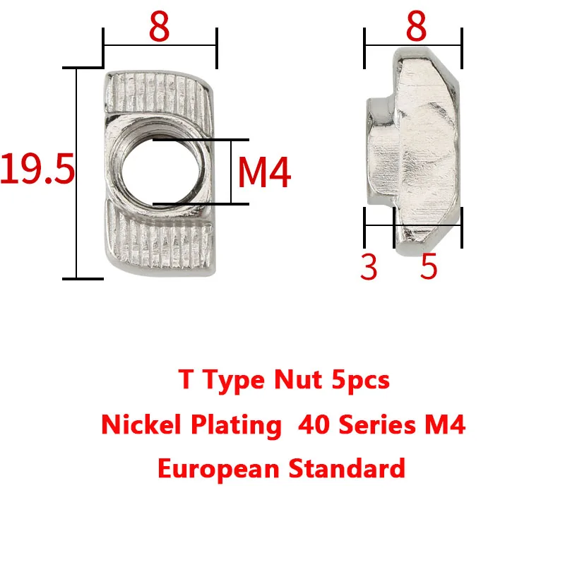 Пример: 20 серий представляет длину, ширину и высоту гайки, а M3 представляет диаметр гайки;