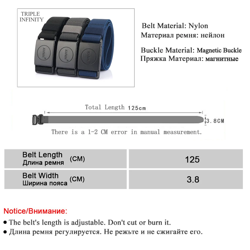 Ремень мужской нейлоновый, с магнитной металлической пряжкой, регул...