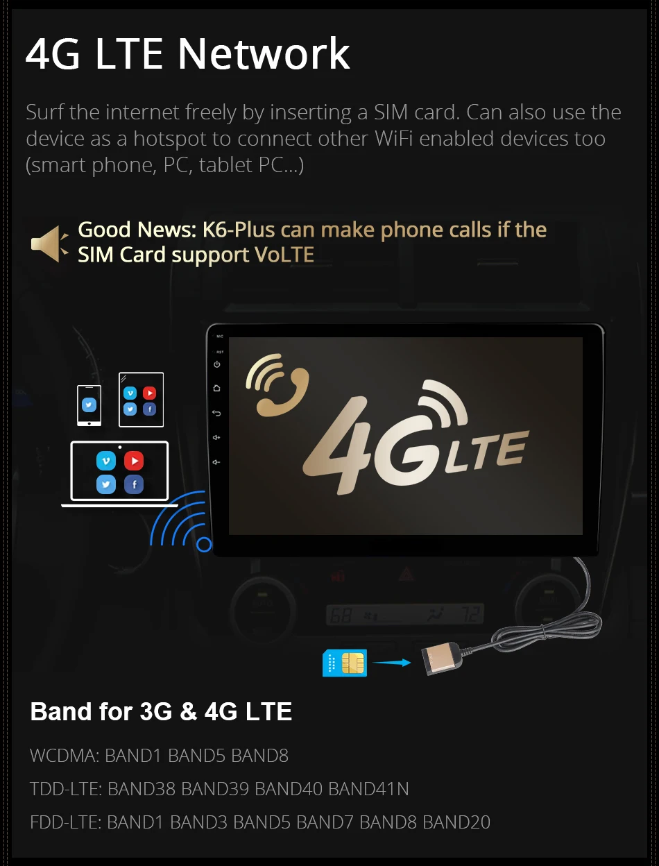 K6 Plus 64G --- UIS7862 | Android 10,0 | 8 ядро (A75 * 2 + A55 * 6) | 4G + 64G | 2.5D + IPS QLED1280 * 720 | Радио 7708 | Усилитель 7851L