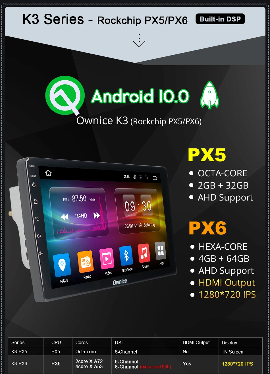 Автомагнитола Ownice 1280*720 K3 K6 Plus, мультимедийный проигрыват...