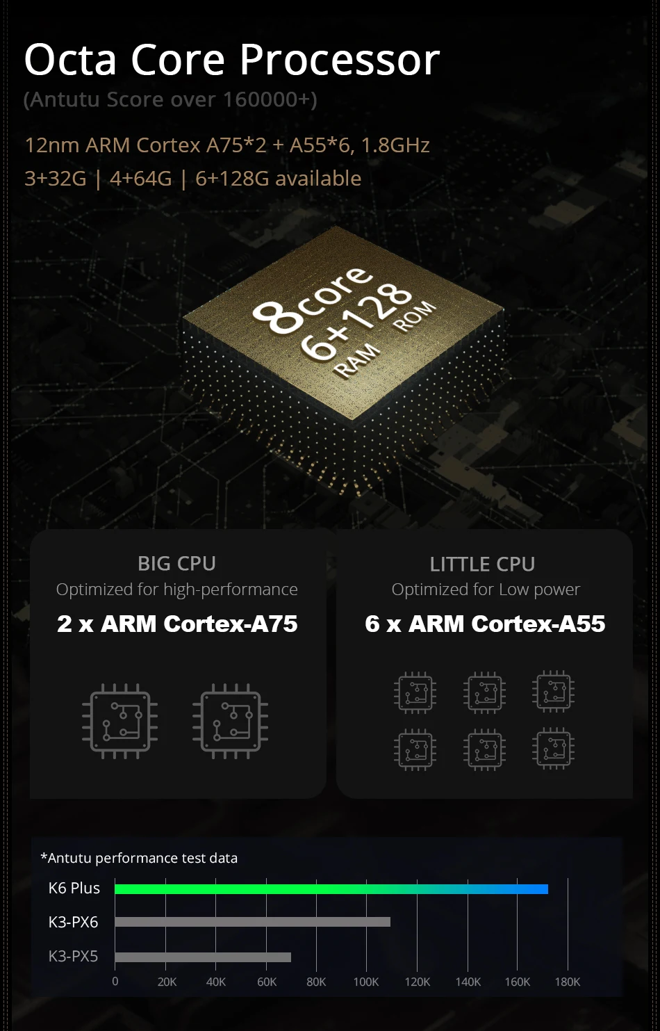 K6 Plus 32G ---- UIS7862 | Android 10,0 | 8 ядер (A75 * 2 + A55 * 6) | 3G + 32G | 2.5D + IPS QLED1280 * 720 | Радио 7708 | Усилитель 7388