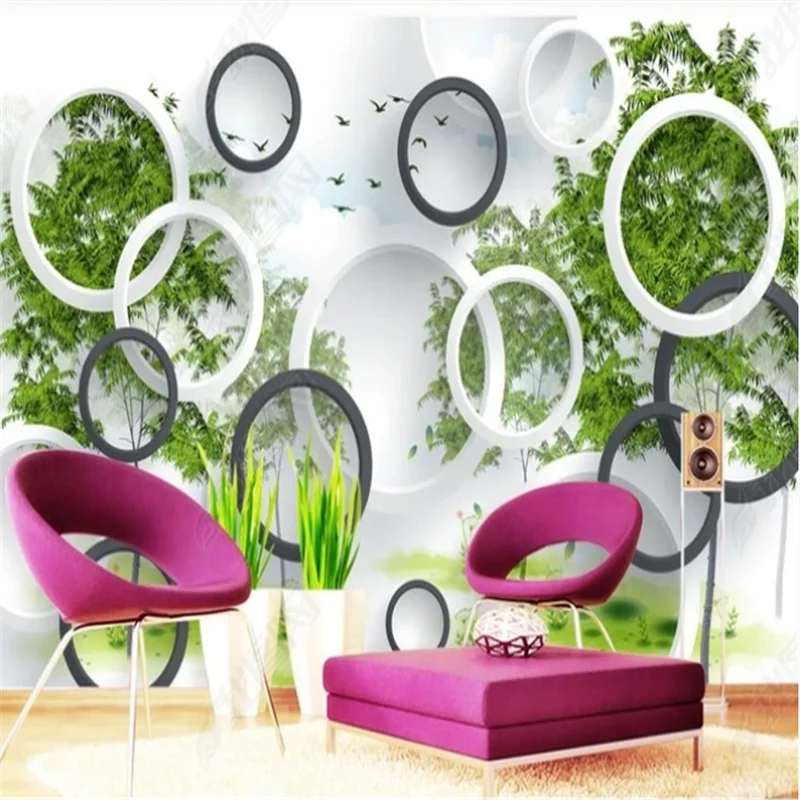 Современная Настенная бумага 3D для гостиной спальни настенная бумага s зеленый лес 3D стерео круг ТВ фон настенная бумага домашний декор