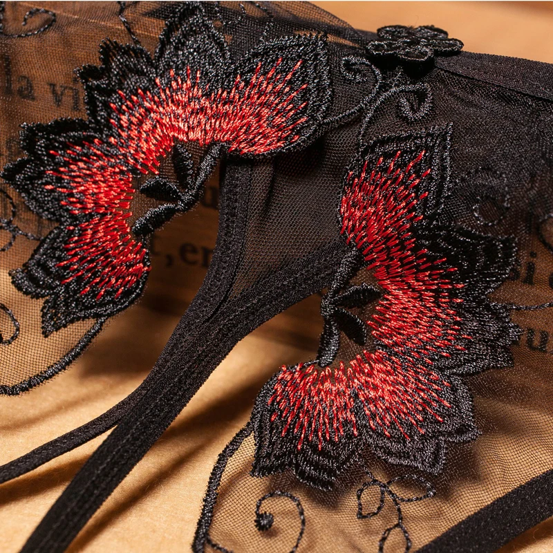 Стринги с вышивкой для девушек, женские трусики, сексуальные сетчат...