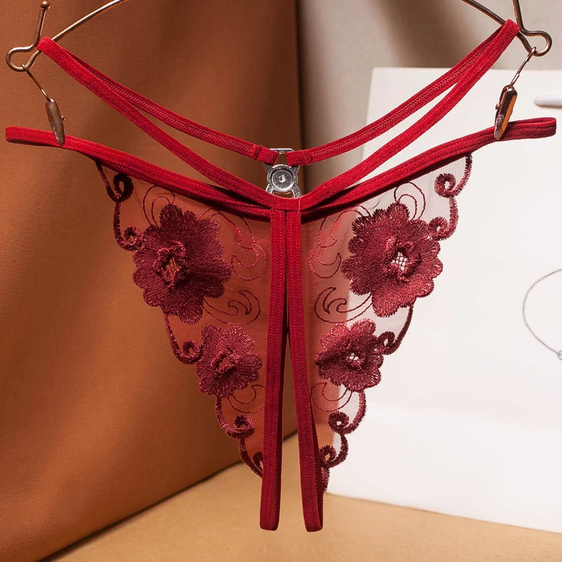 Для женщин секс трусики кружевные трусы Открыть Батт и вышивкой для...