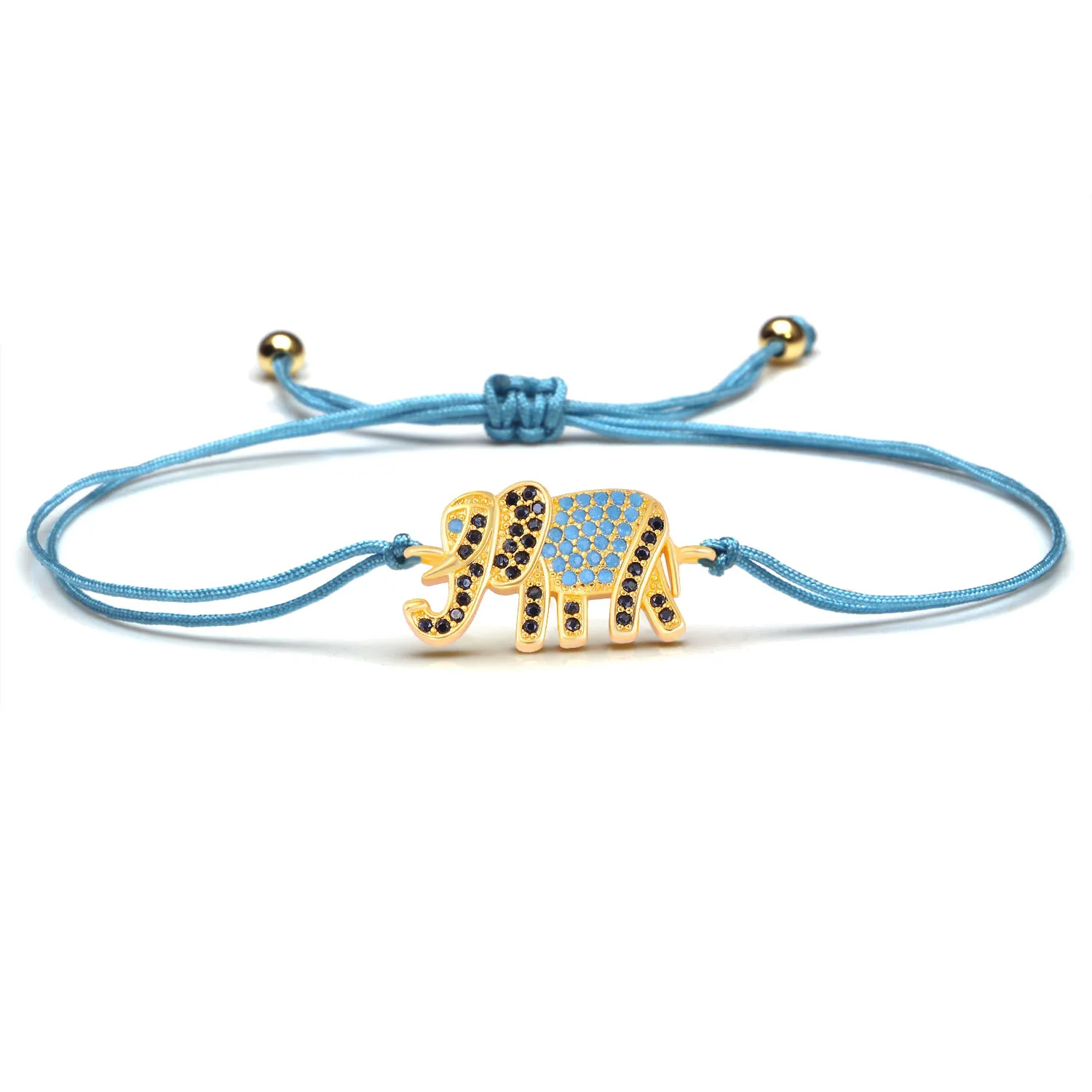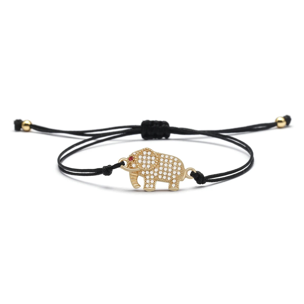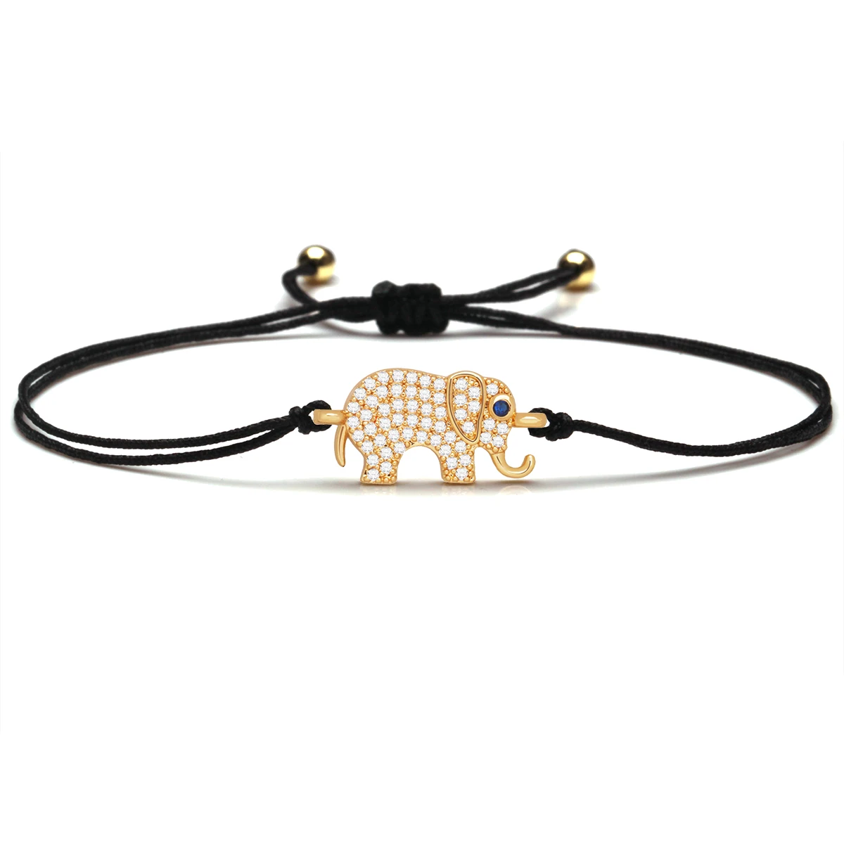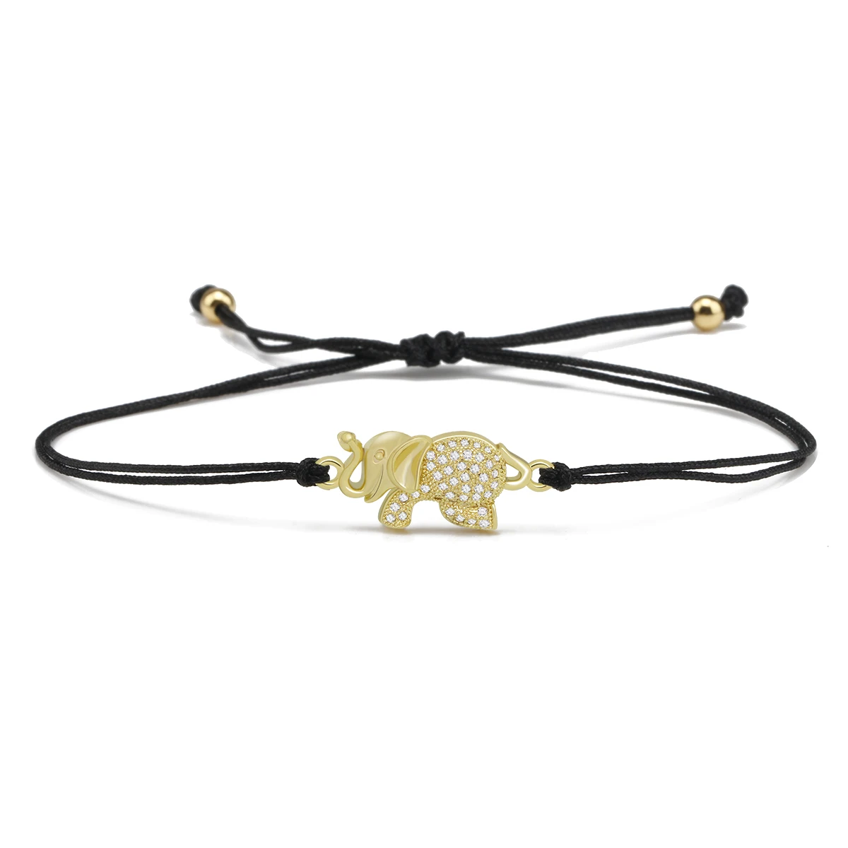 AAA сверкающий фианит черный глаз прекрасный браслет с подвеской в виде слона Женский позолоченный медный CZ Счастливое животное ювелирное изделие подарок для девочки