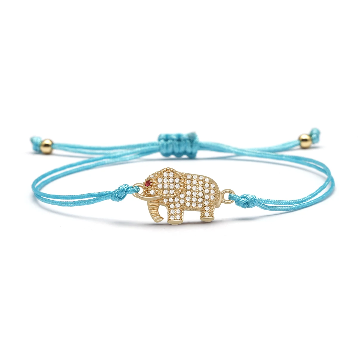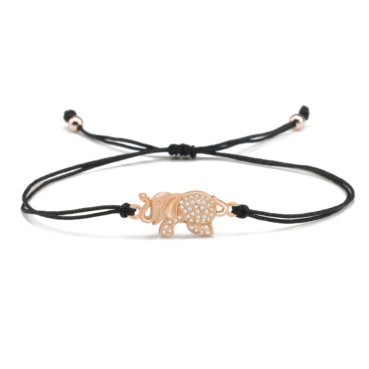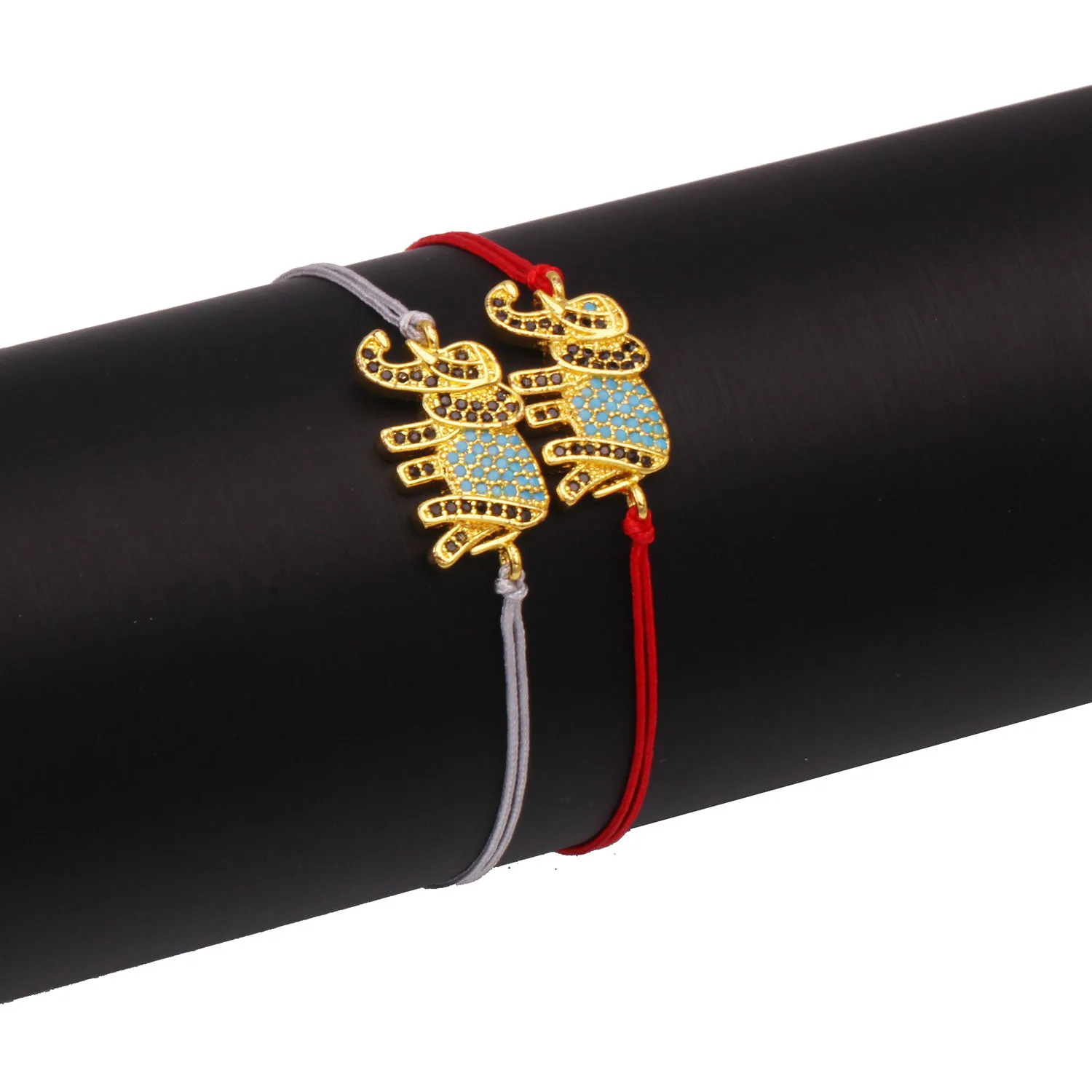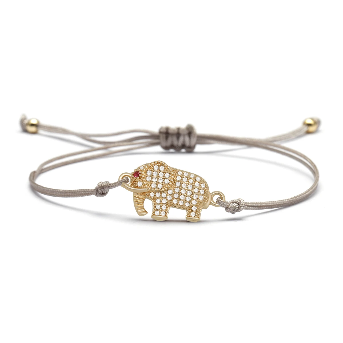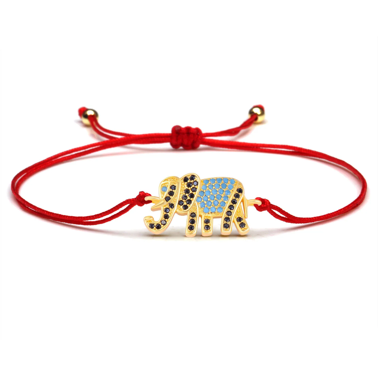 AAA сверкающий фианит черный глаз прекрасный браслет с подвеской в виде слона Женский позолоченный медный CZ Счастливое животное ювелирное изделие подарок для девочки