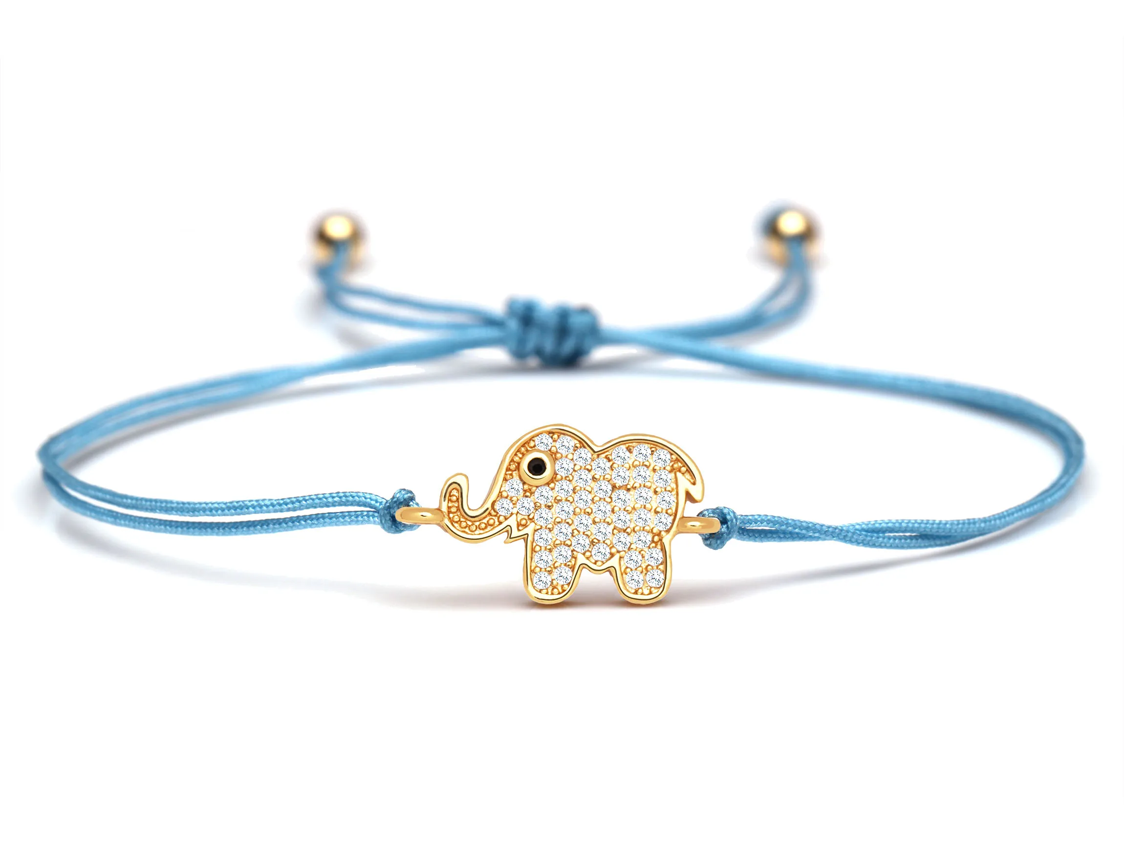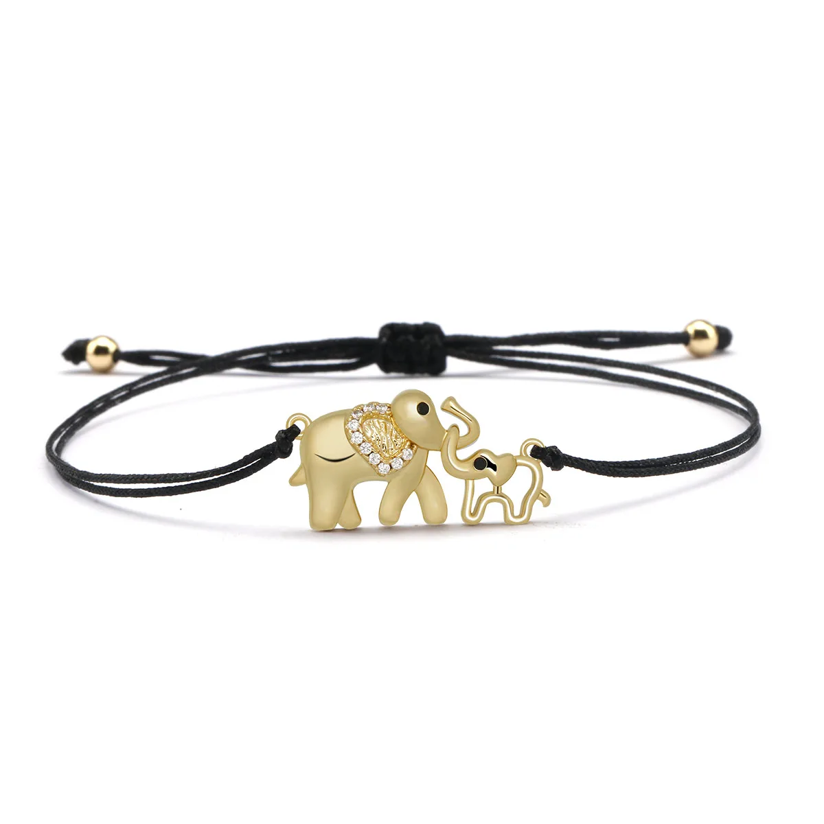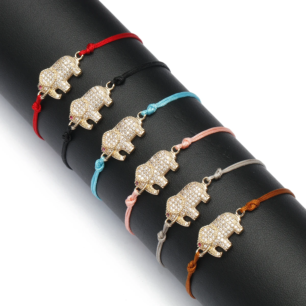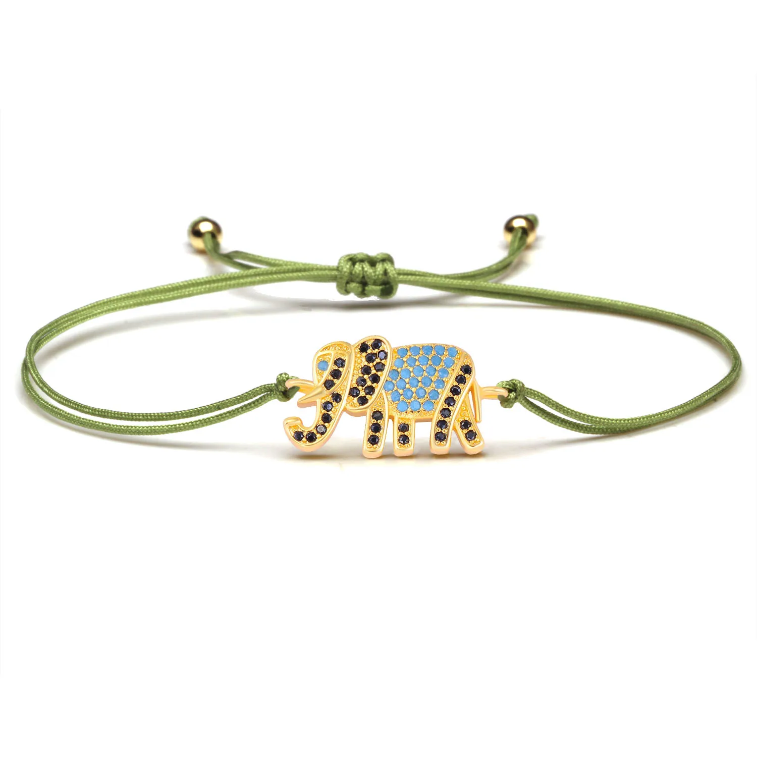 AAA сверкающий фианит черный глаз прекрасный браслет с подвеской в виде слона Женский позолоченный медный CZ Счастливое животное ювелирное изделие подарок для девочки