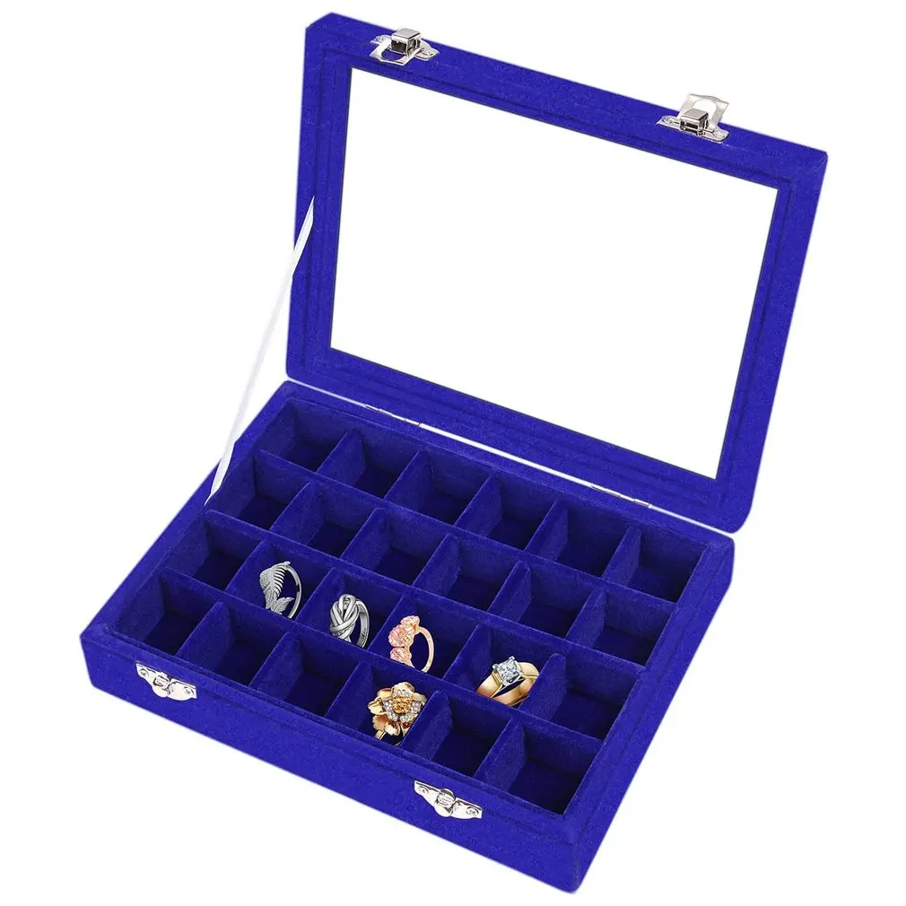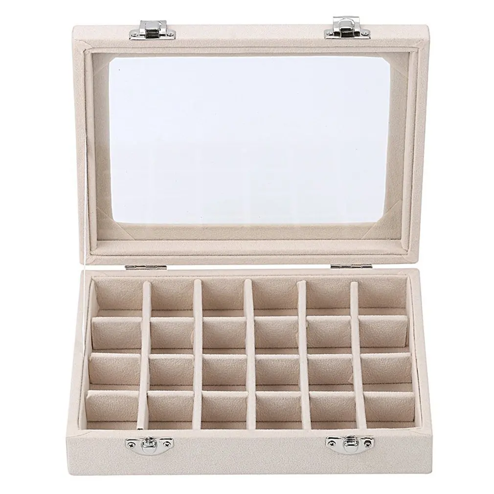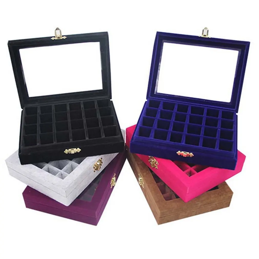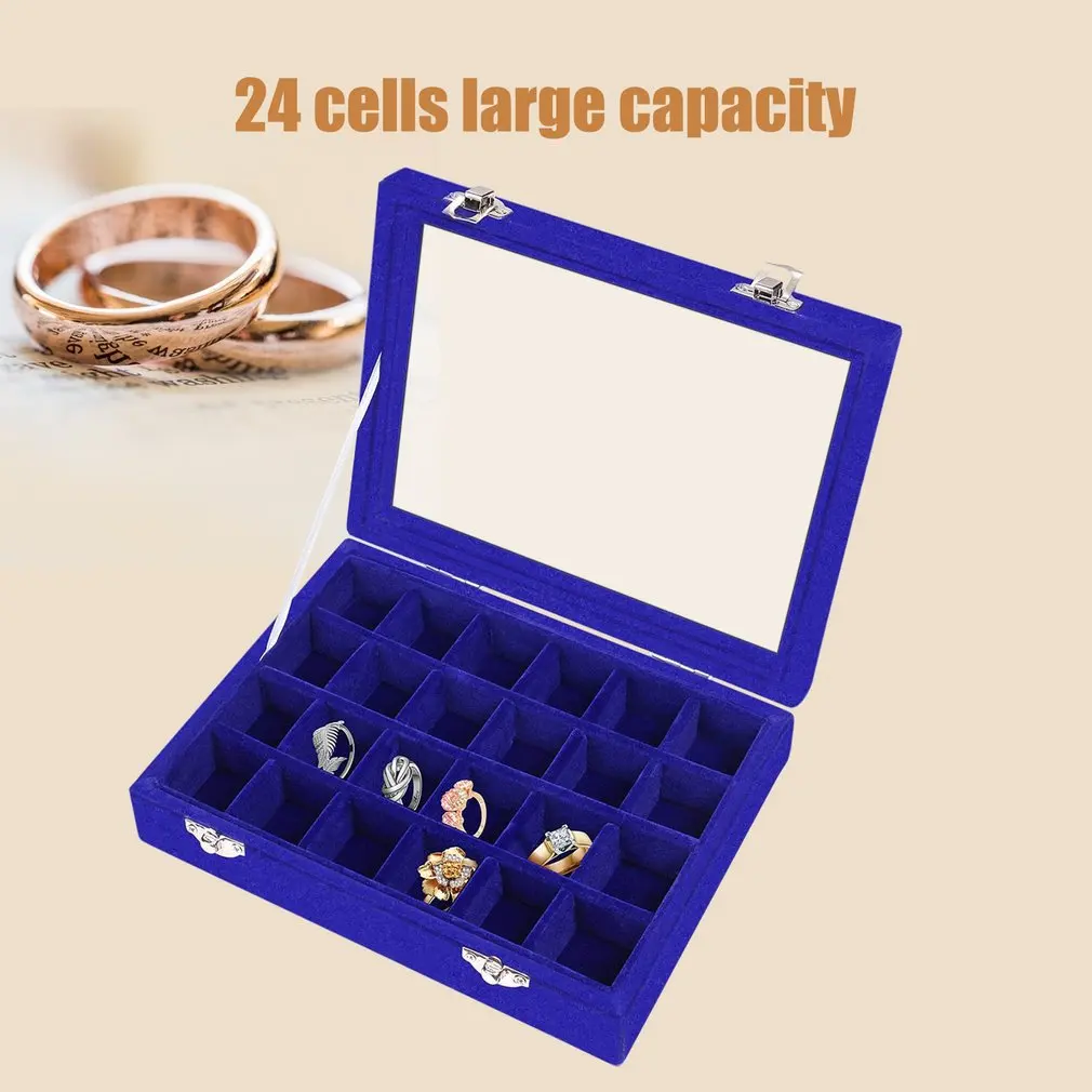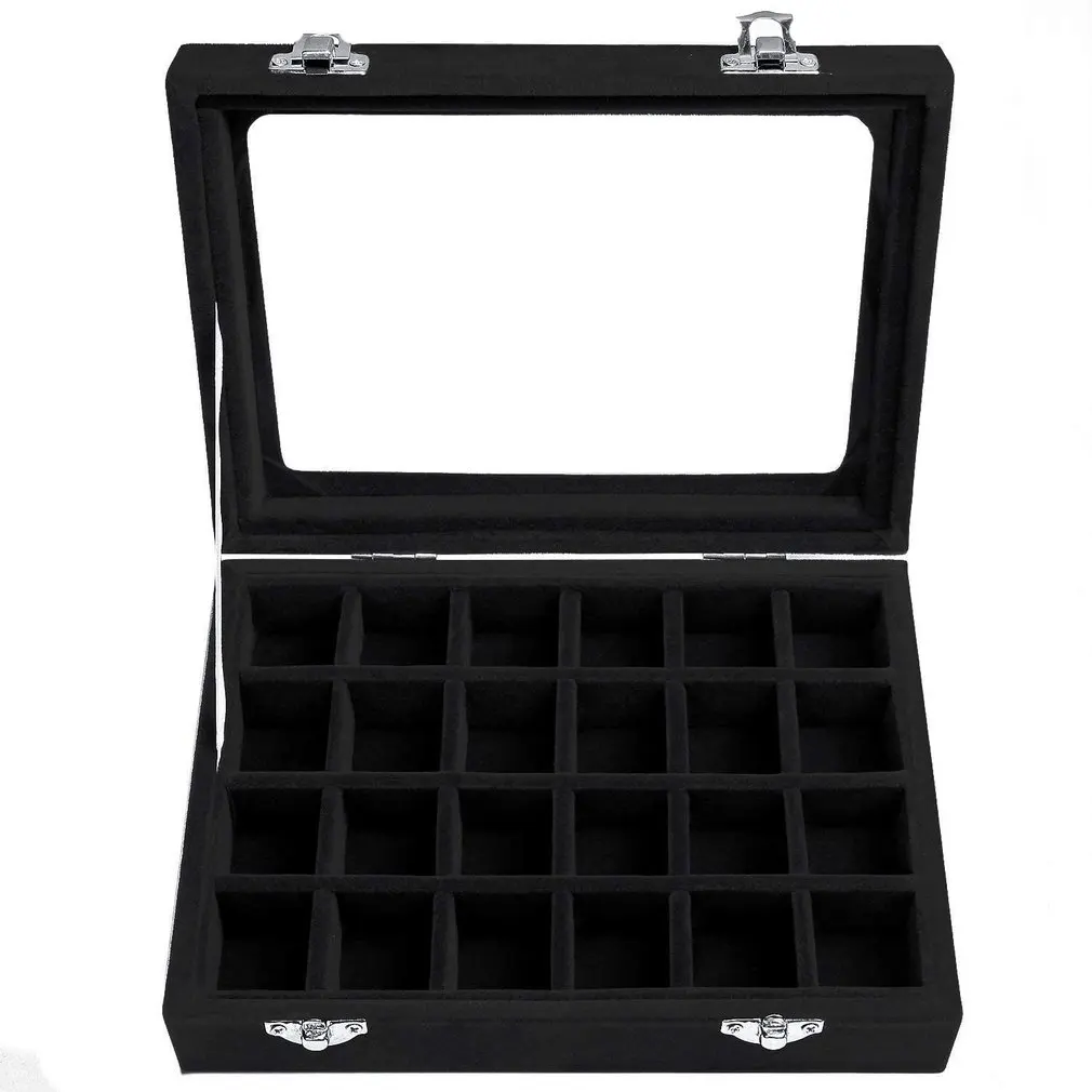 Бархатная стеклянная шкатулка с 24 ячейками для демонстрации колец, органайзер, коробка для хранения серег, держатель для ювелирных украшений, шкатулка для демонстрации
