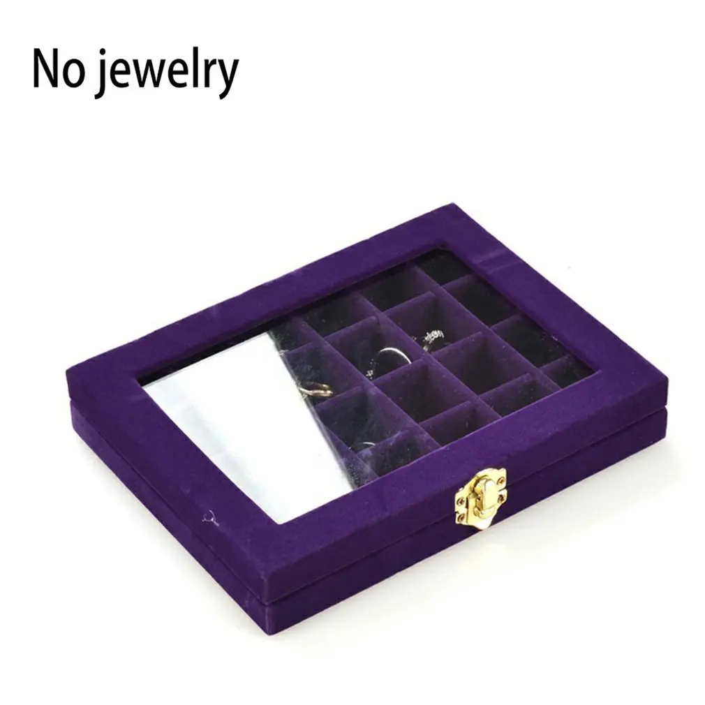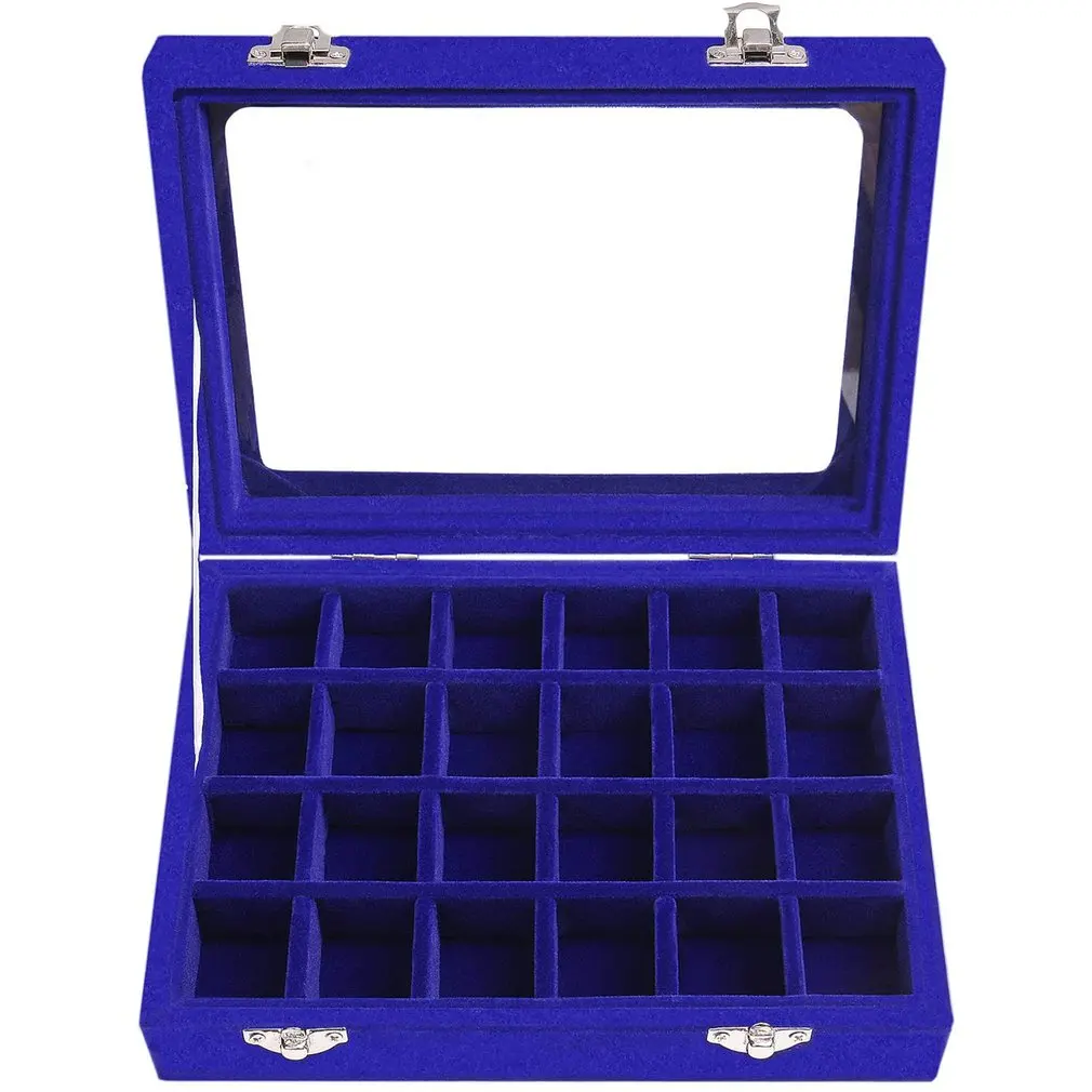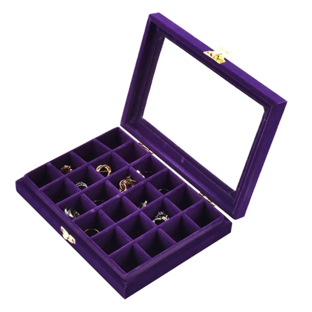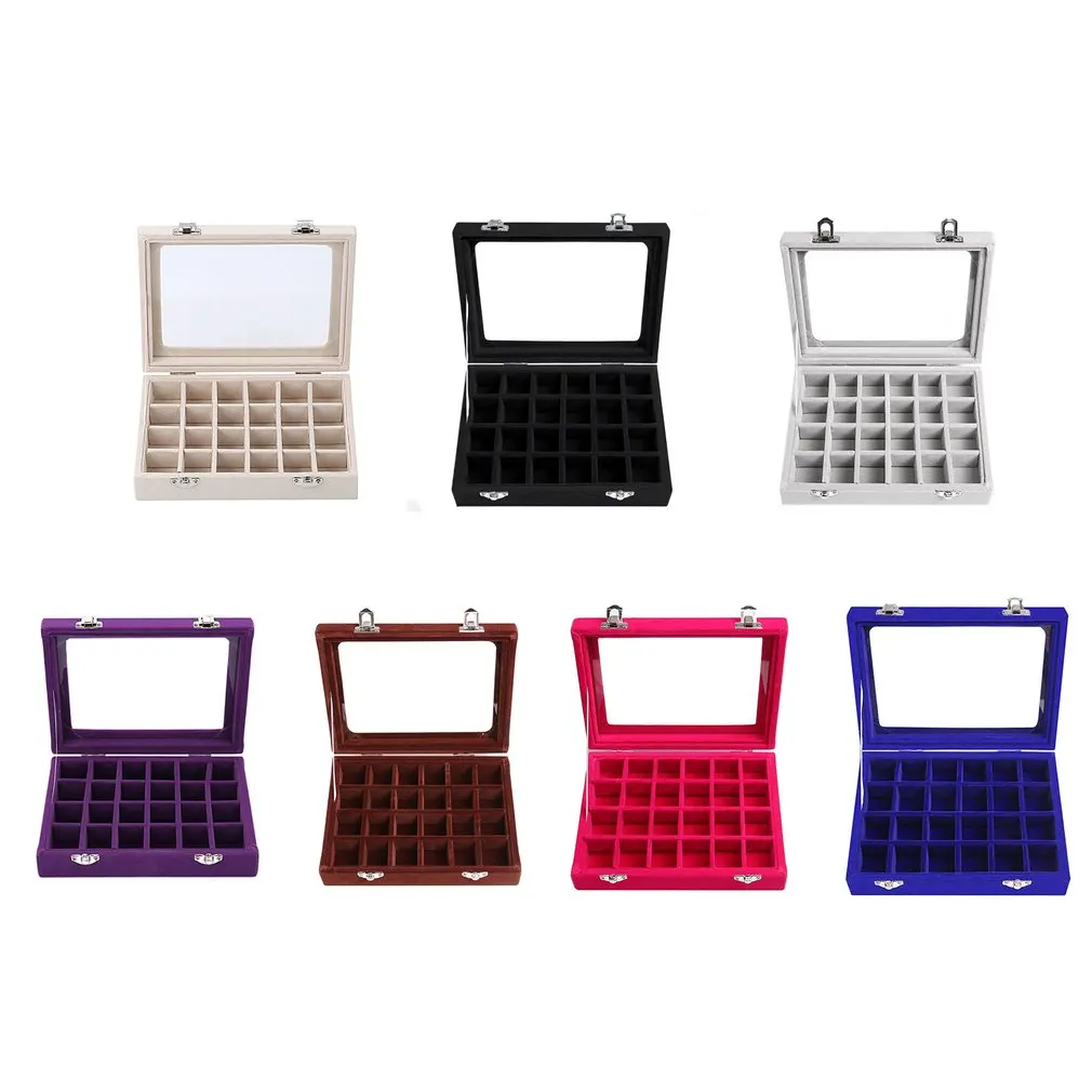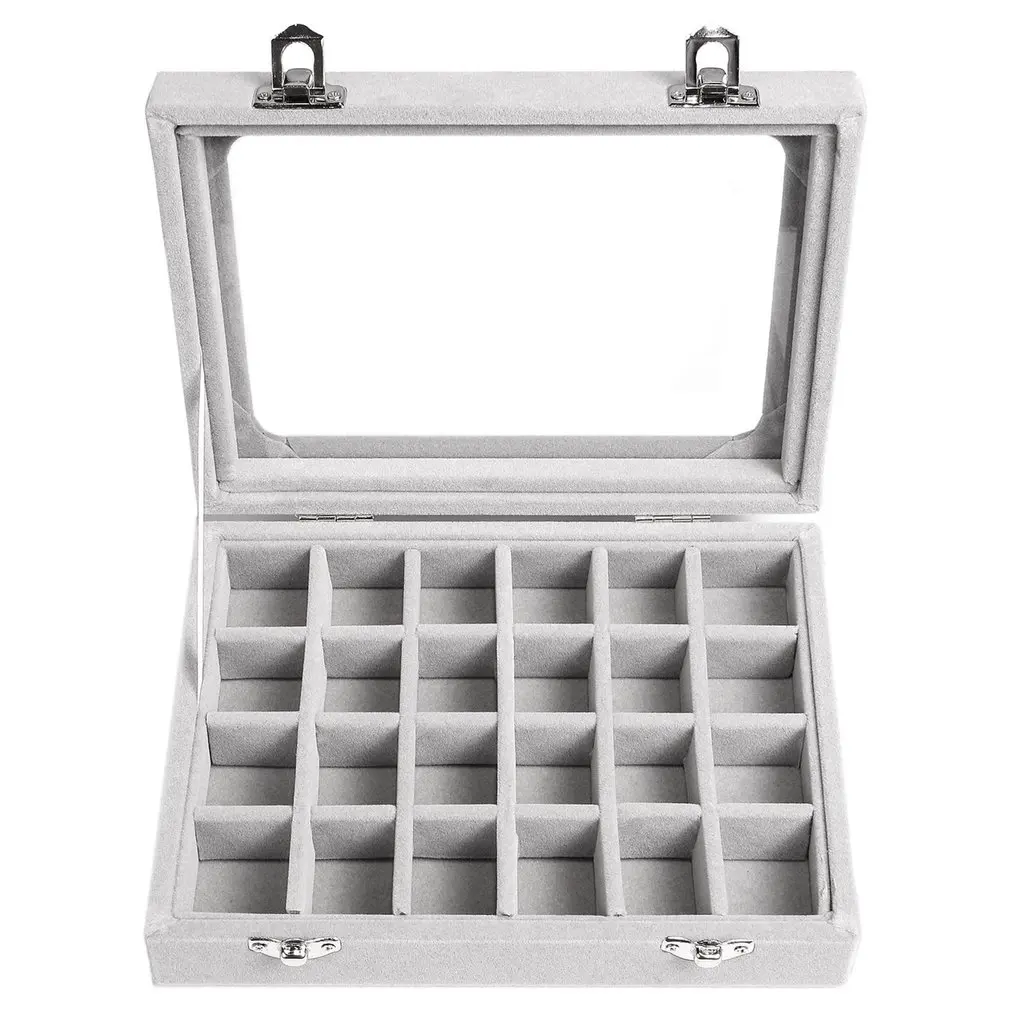 Бархатная стеклянная шкатулка с 24 ячейками для демонстрации колец, органайзер, коробка для хранения серег, держатель для ювелирных украшений, шкатулка для демонстрации