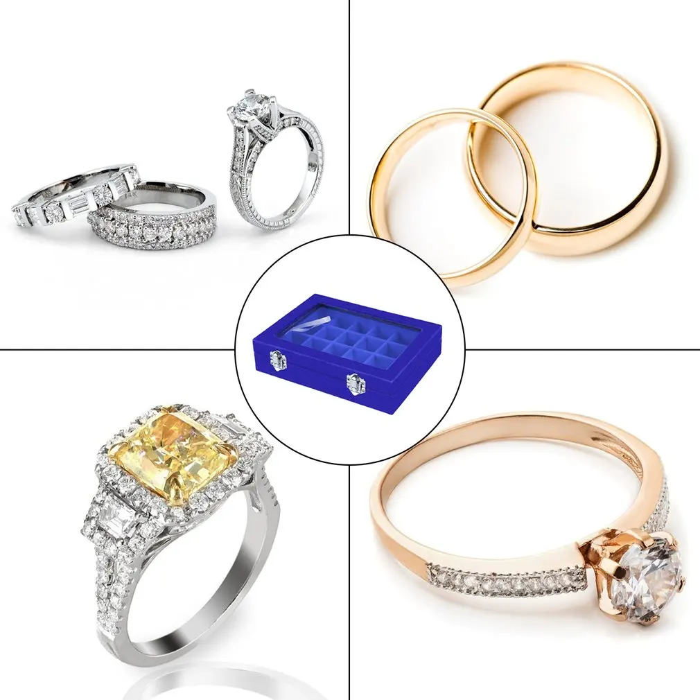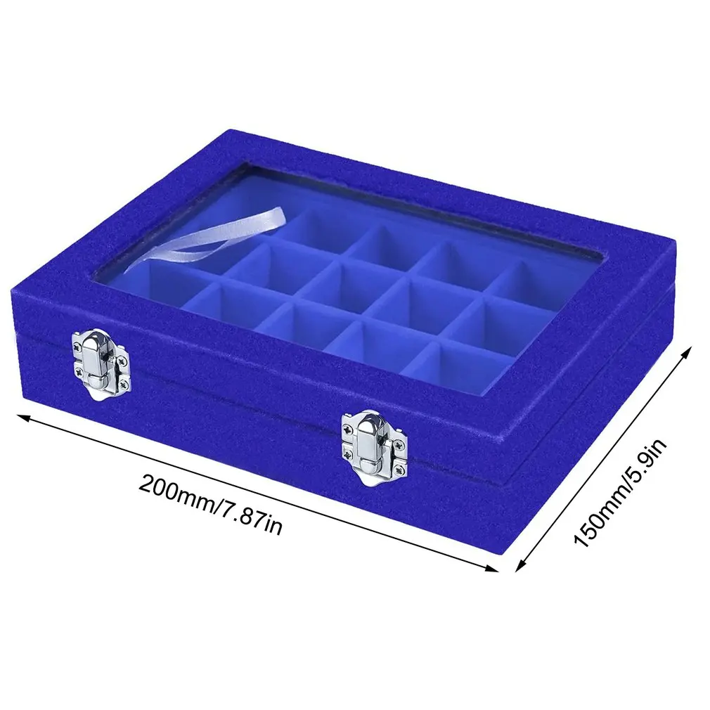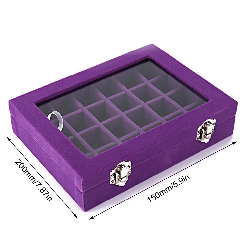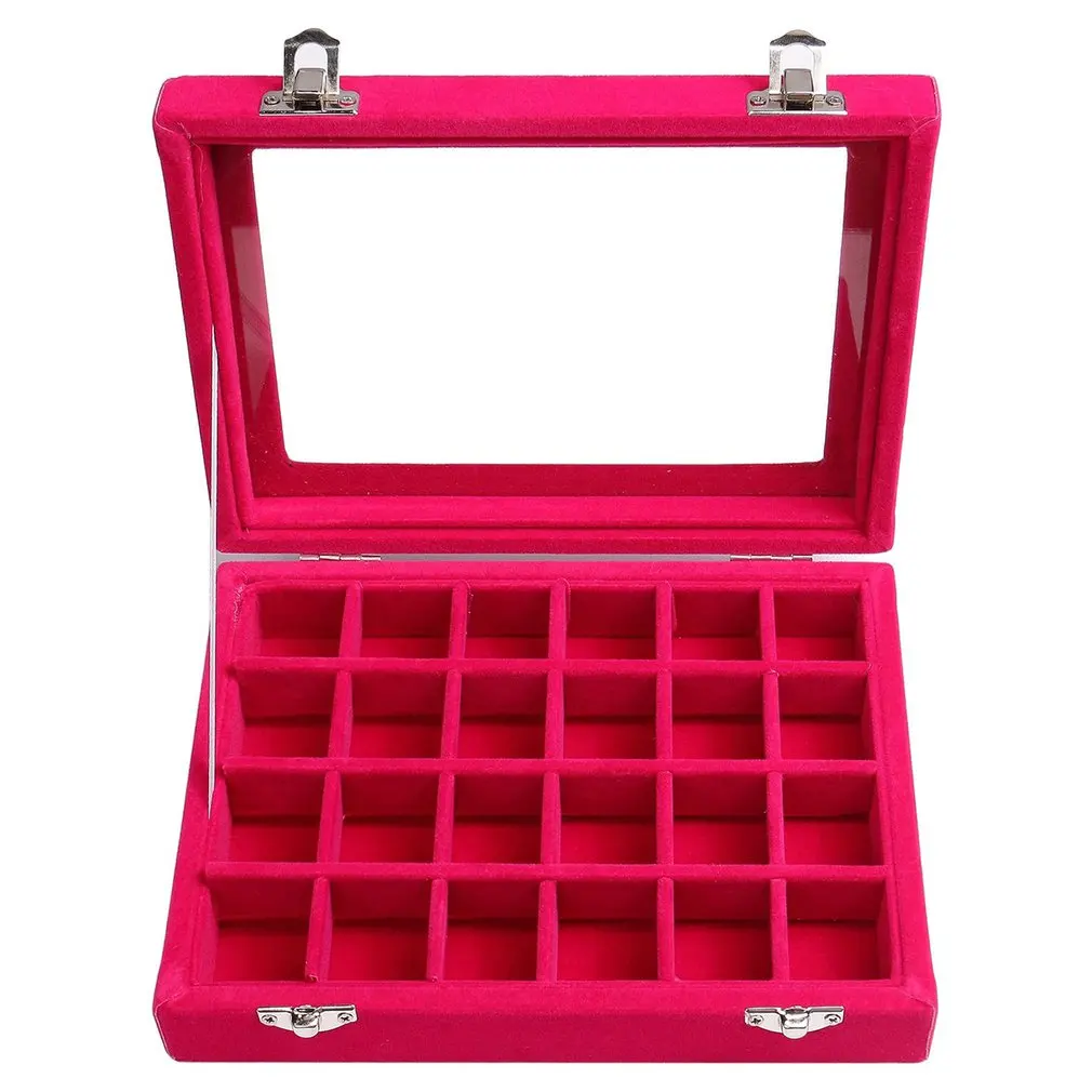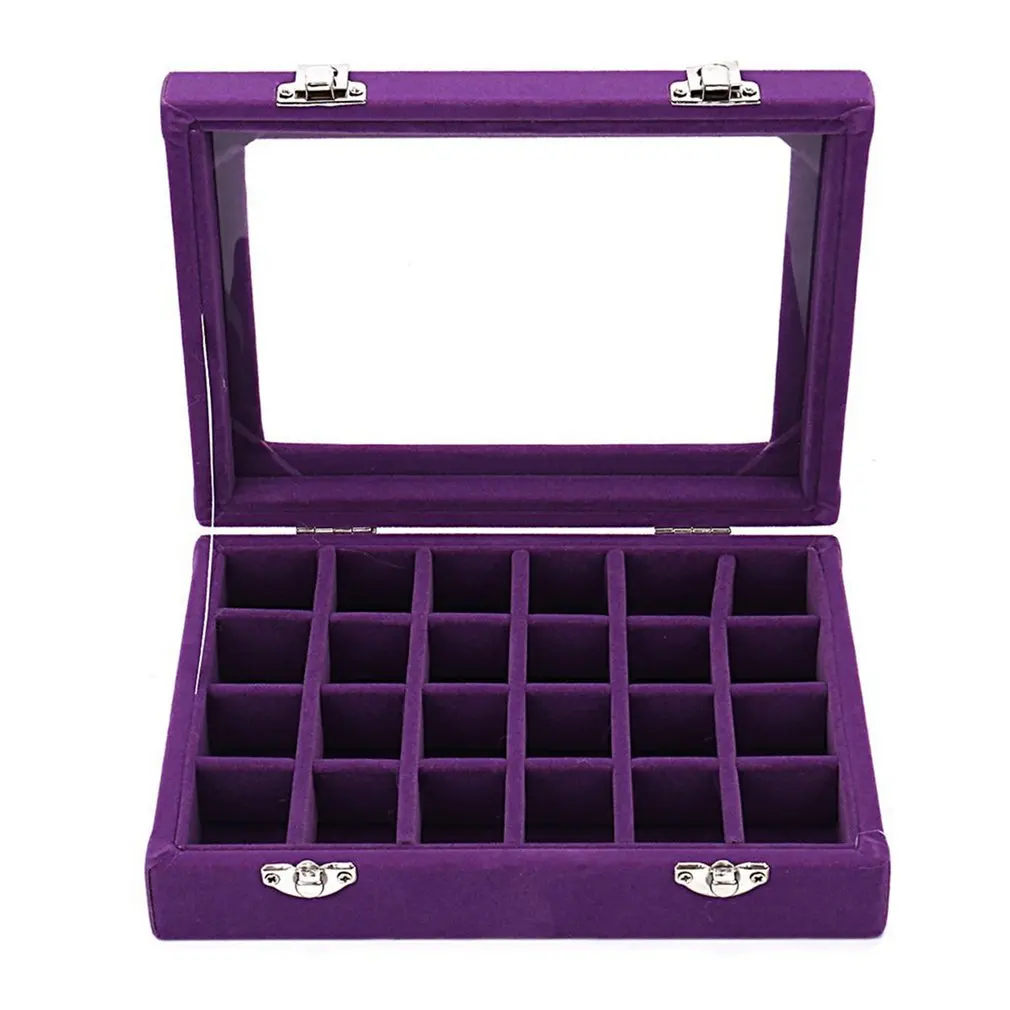 Бархатная стеклянная шкатулка с 24 ячейками для демонстрации колец, органайзер, коробка для хранения серег, держатель для ювелирных украшений, шкатулка для демонстрации