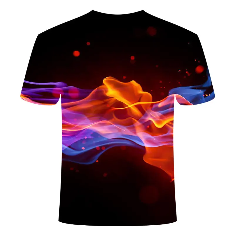 Футболка мужская с 3D-принтом пламени, простая повседневная тенниска с круглым вырезом, трендовый топ с дымчатым элементом, лето