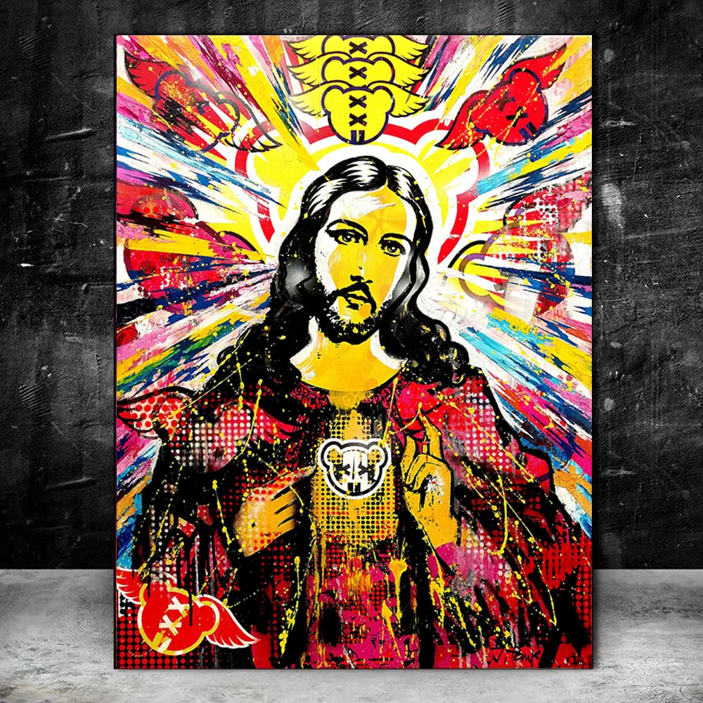 Абстрактный граффити с изображением Иисуса на холсте Искусство граффити религия Холст Картина домашний декор для стен