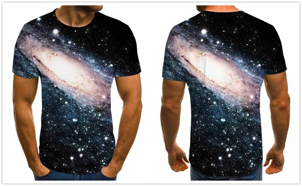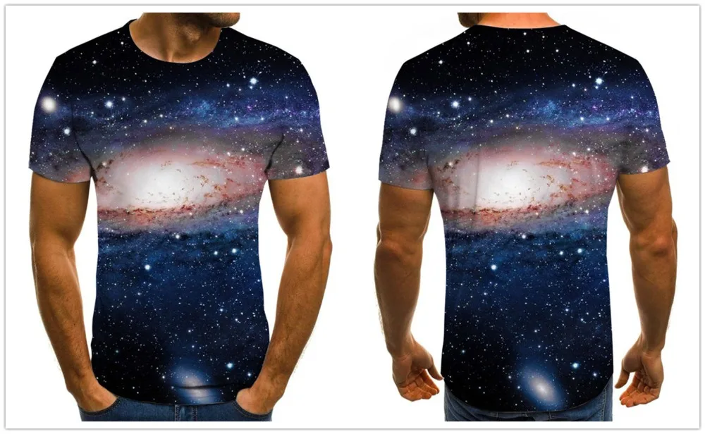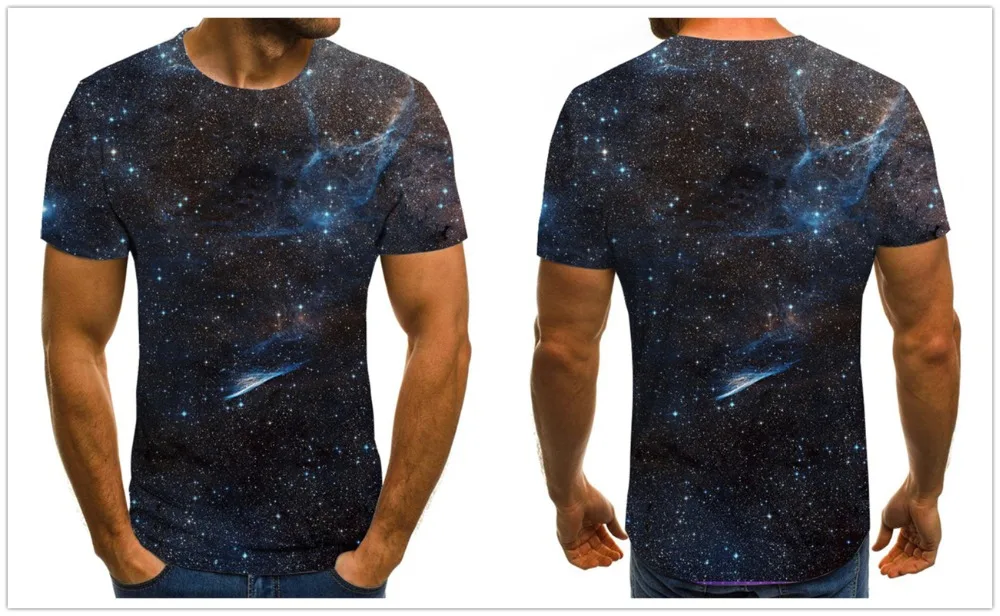 Футболка мужская с 3D принтом звездного неба, рубашка с круглым вырезом и короткими рукавами, модная уличная одежда, лето 2020