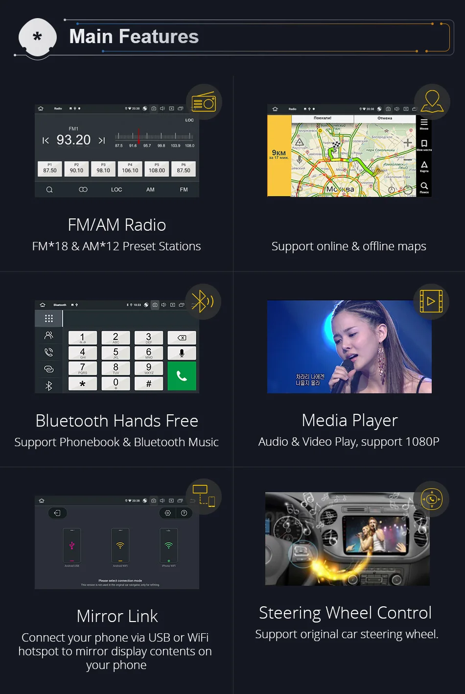 Special FeaturesRadio tuner/Capacitive screen/Bluetooth/TV/Built-in GPS