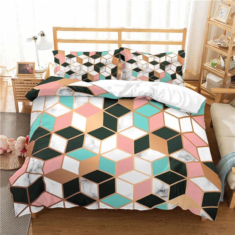 Комплект постельного белья с геометрическим мраморным принтом, 23 шт.