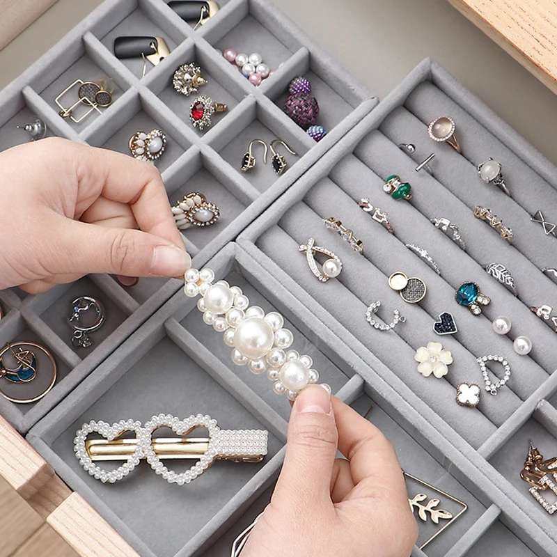Портативный органайзер для ювелирных украшений, модный бархатный бокс с подставкой-держателем для демонстрации колец и серег, чехол для хранения ювелирных изделий