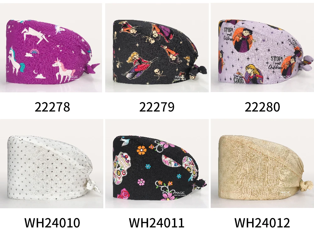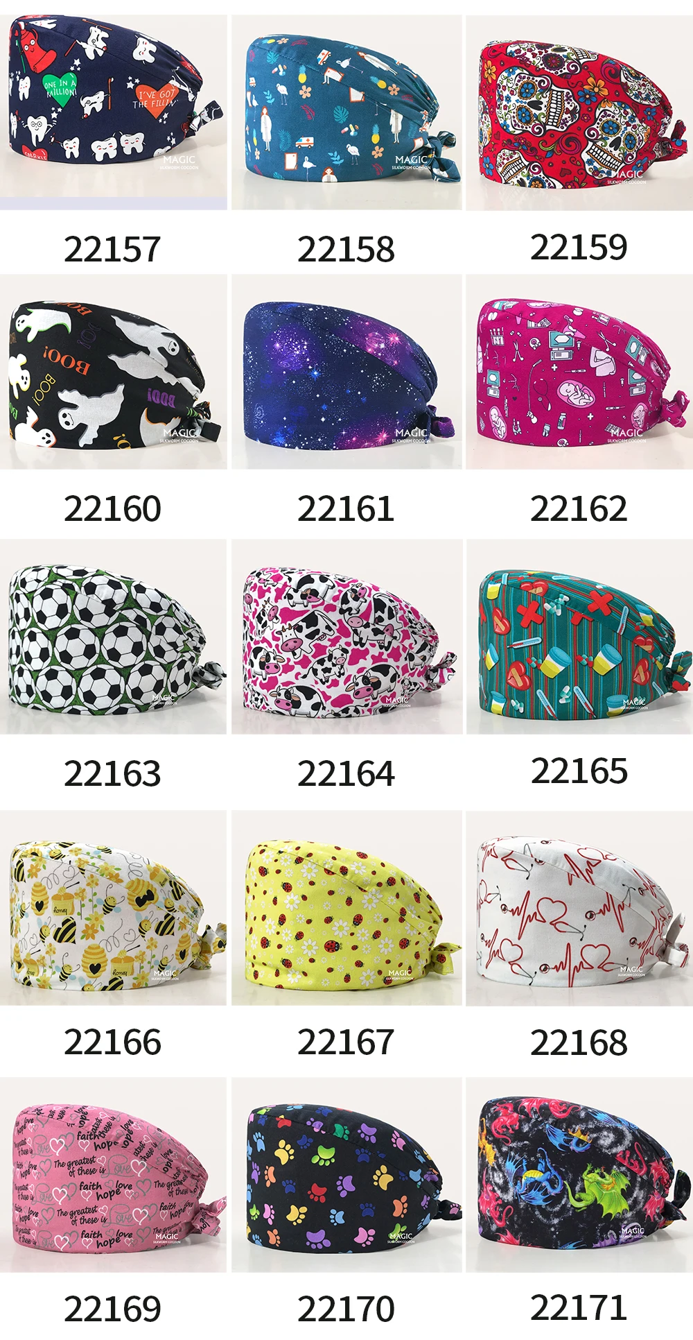 Шапка-медицинские шапочки для косметолога, мультяшный матовый принт...