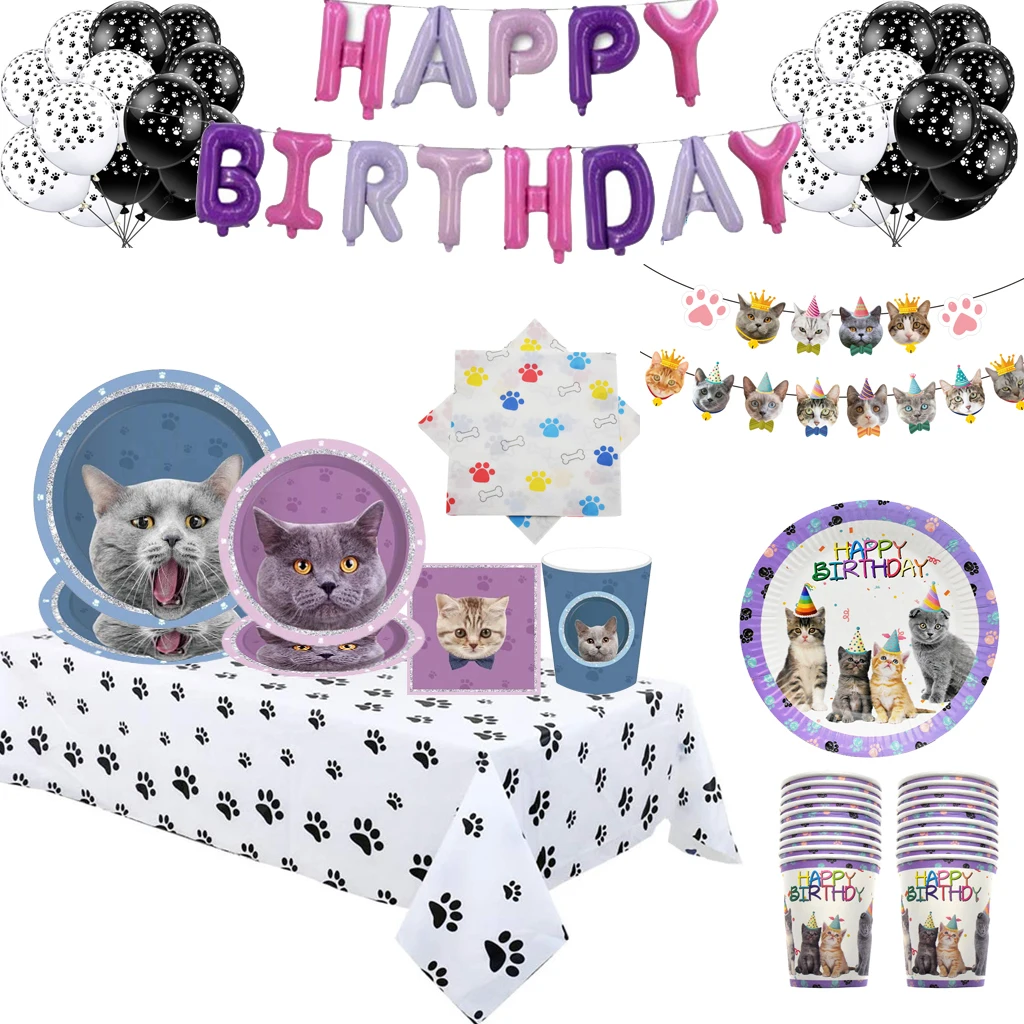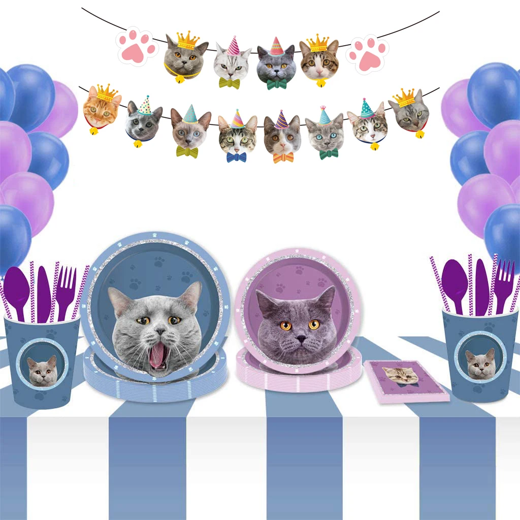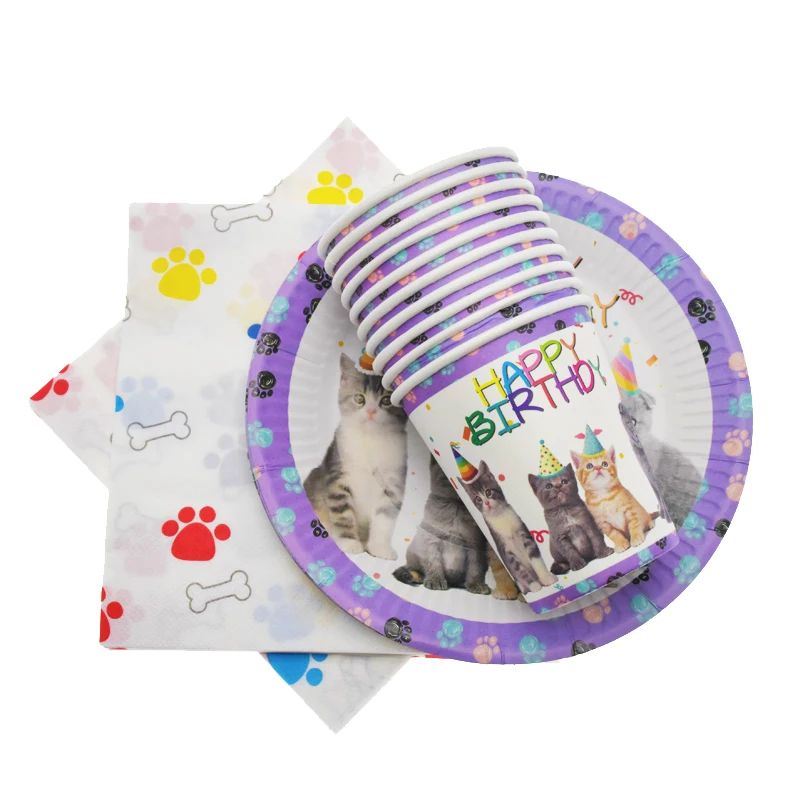 Милый Кот одноразовая посуда бумажные тарелки и стаканы салфетки скатерть Кот вечерние комплект поставки вечерние цветение День рождения вечерние украшения