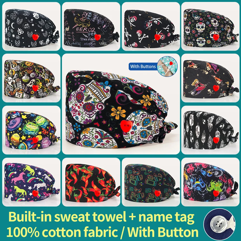 Медицинские Хирургические колпачки унисекс, регулируемые, с принтом...