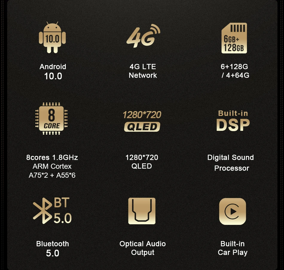 QLED Android 10,0 4G LTE SPDIF 1280*720 автомобильное радио GPS 8 я...