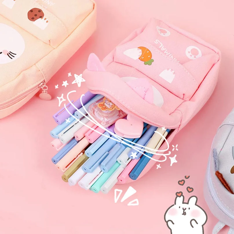 Чехол для карандашей s Kawaii, школьный чехол для карандашей, большие канцелярские принадлежности, холщовый чехол для школы, чехол с животными, школьные принадлежности, милые сумки для карандашей