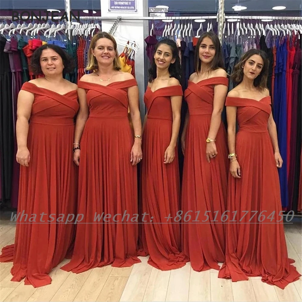 Шифоновое платье подружки невесты, темно-оранжевое, ТРАПЕЦИЕВИДНОЕ, с открытыми плечами, 2021, для женщин, на свадьбу, размера плюс