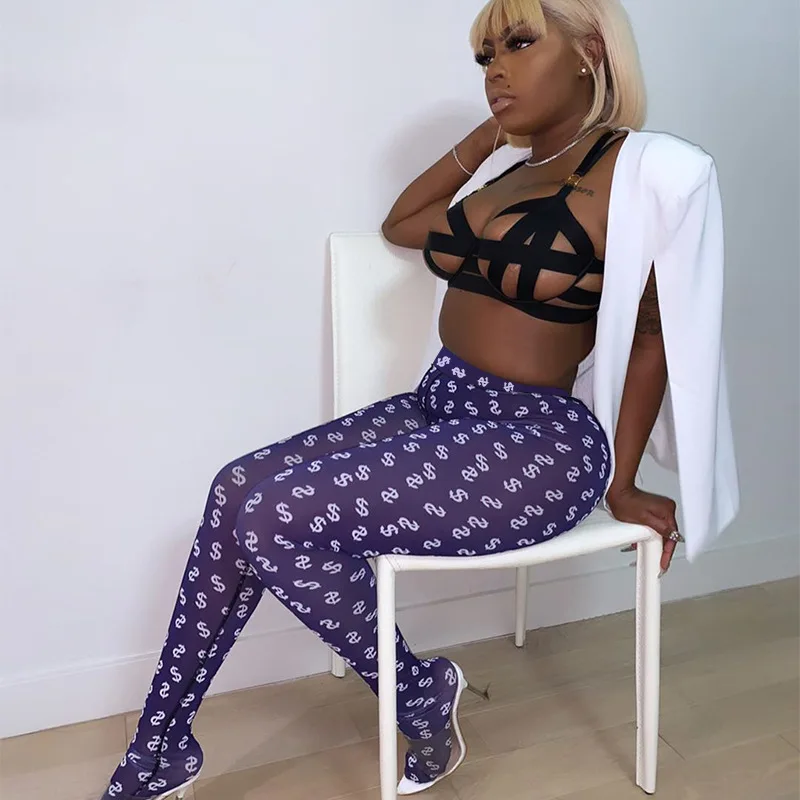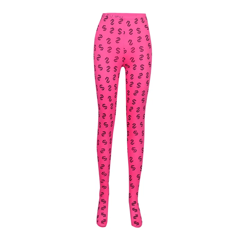 QuanRun символ печати с высокой талией узкие длинные брюки с низкой талией сексуальные на каждый день, женские штаны вечерние Клубные уличная на весну