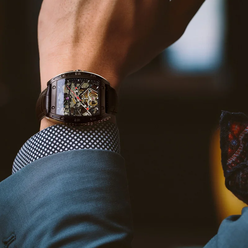 Reloj hombreFashion Tonneau Skeleton Watch For Men