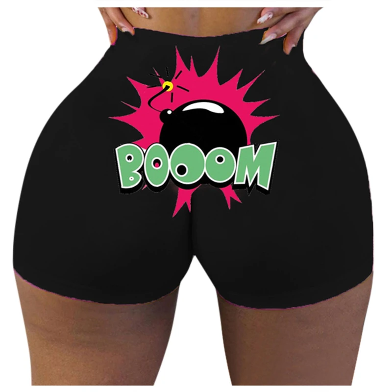 Женские шорты для фитнеса и тренировок, леггинсы для спортзала, с забавным принтом, с завышенной талией, резинка для ягодиц, йоги, короткие спортивные Леггинсы