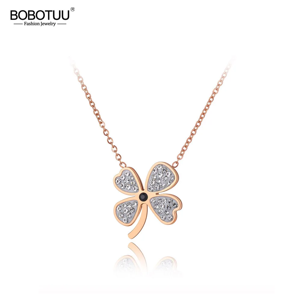 BOBOTUU, выполненное из нержавеющей стали, легированной титаном, фианиты, кристаллы, цветок колье ожерелье ювелирные изделия Мода завод очарование кулон ожерелье для девочек BN20027