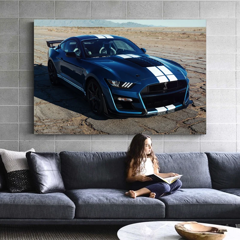 Настенные художественные плакаты Supercar Ford Mustang Shelby GT500 с синими мышечными машинами, тканевые картины на холсте для декора гостиной