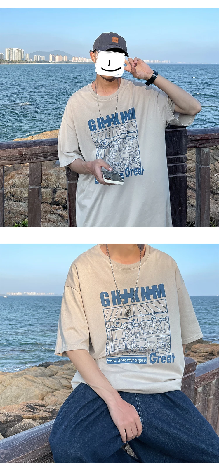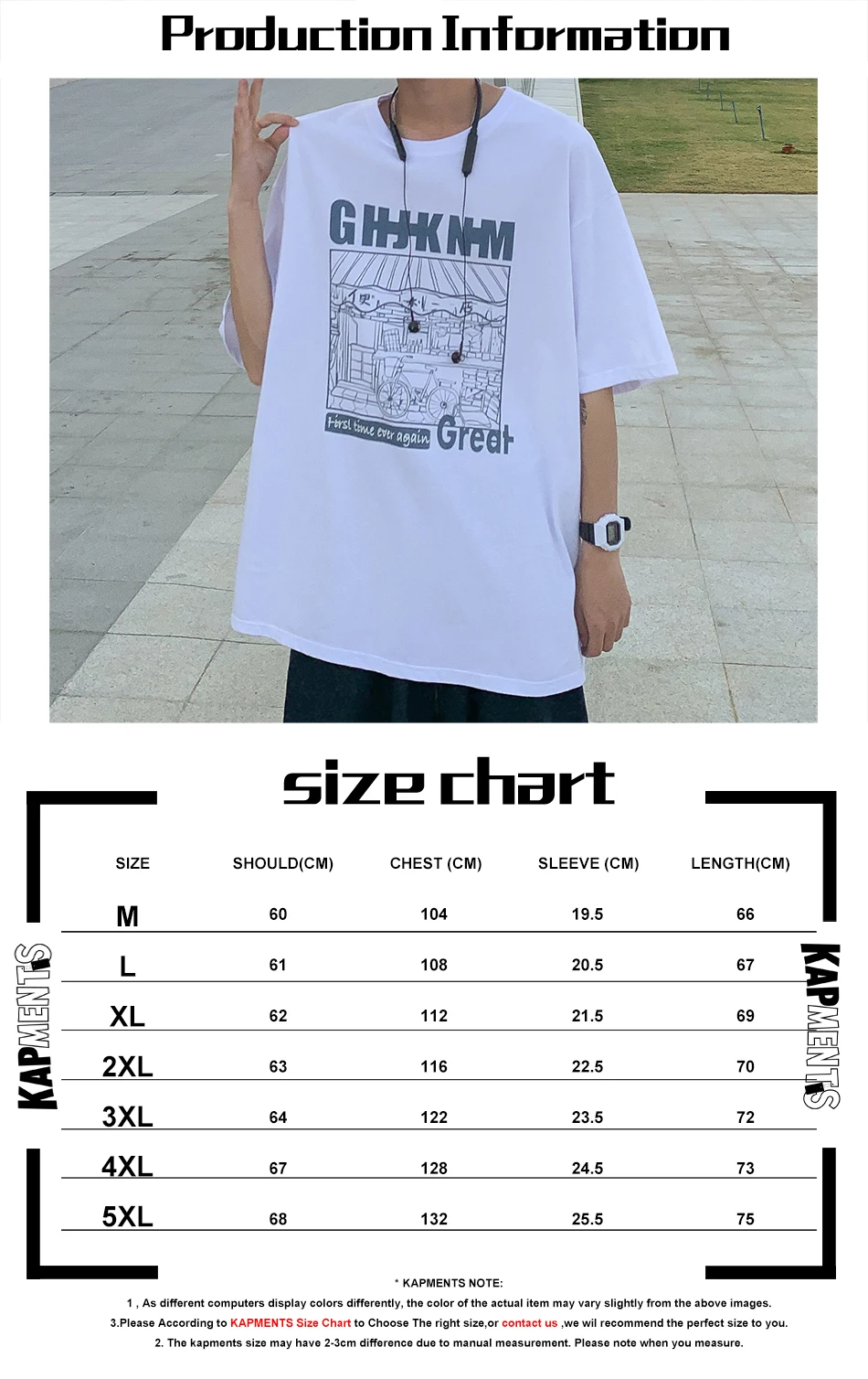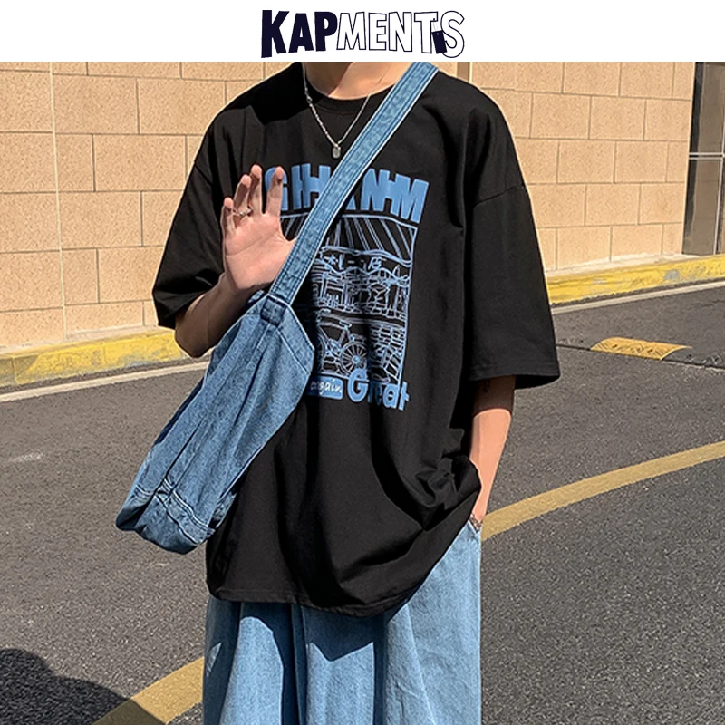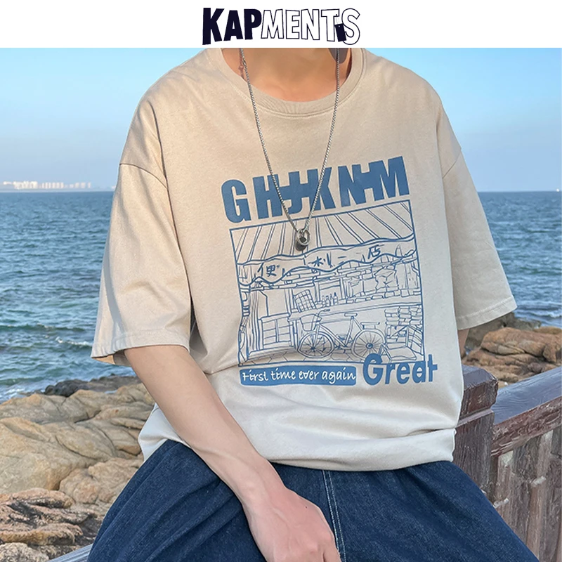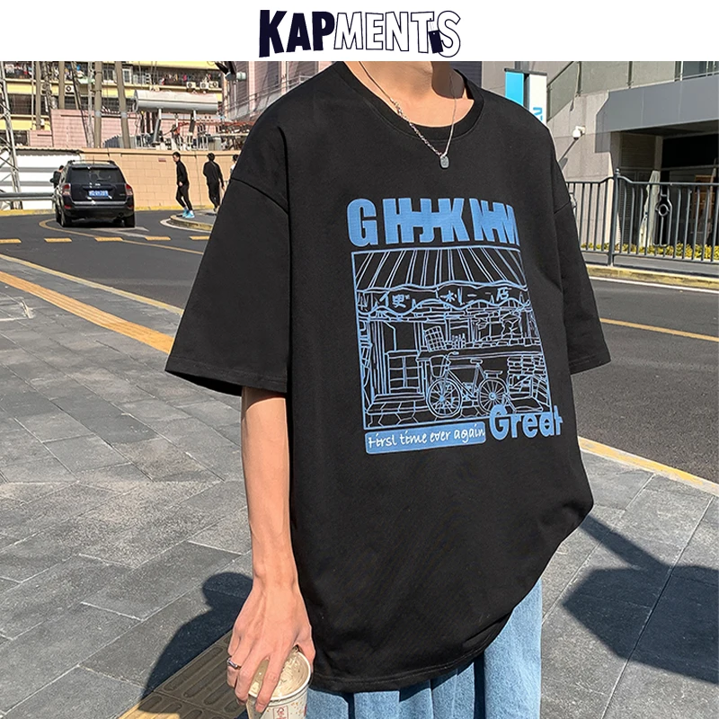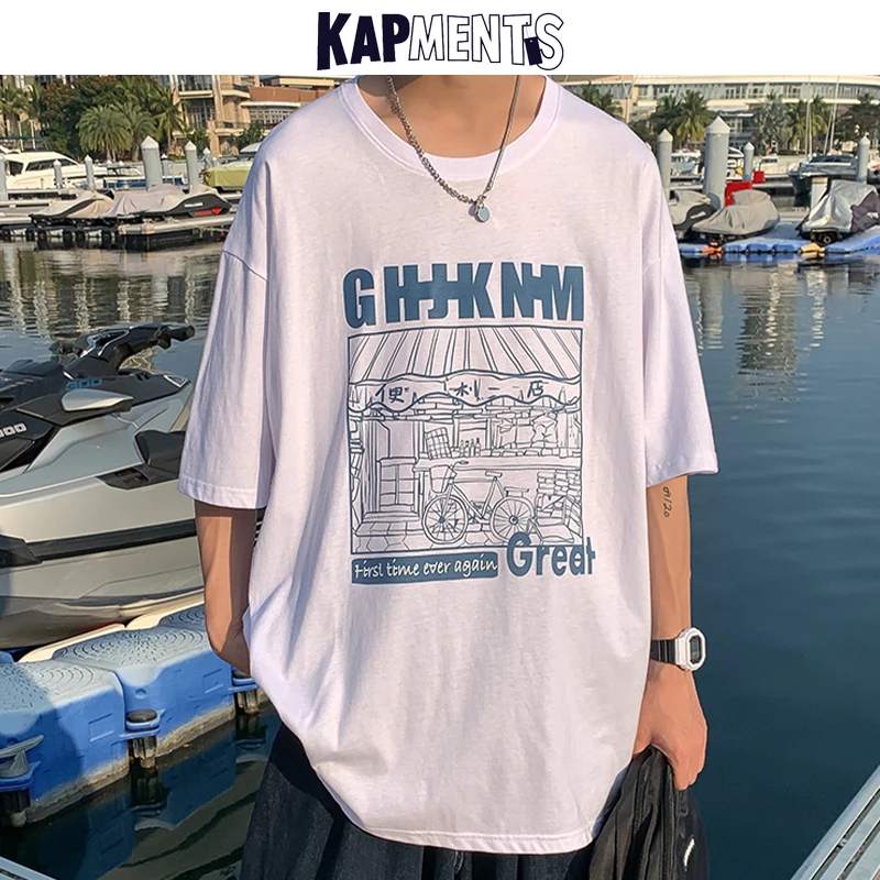 KAPMENTS для мужчин хлопок корейские модные свободные футболки 2021 летние мужские винтажные Стиль Повседневная футболка с принтом Мужские футболки с принтом