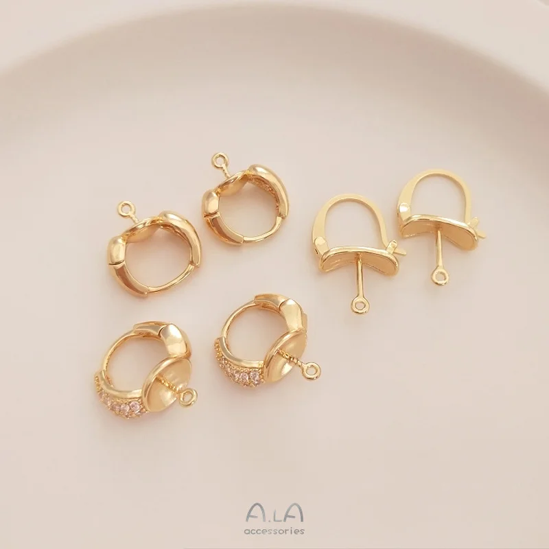 Аксессуары для сережек ручной работы, половина из 14-каратного золота жемчуг с отверстиями пробы, с фианитами, подвески для сережек, 1 пара