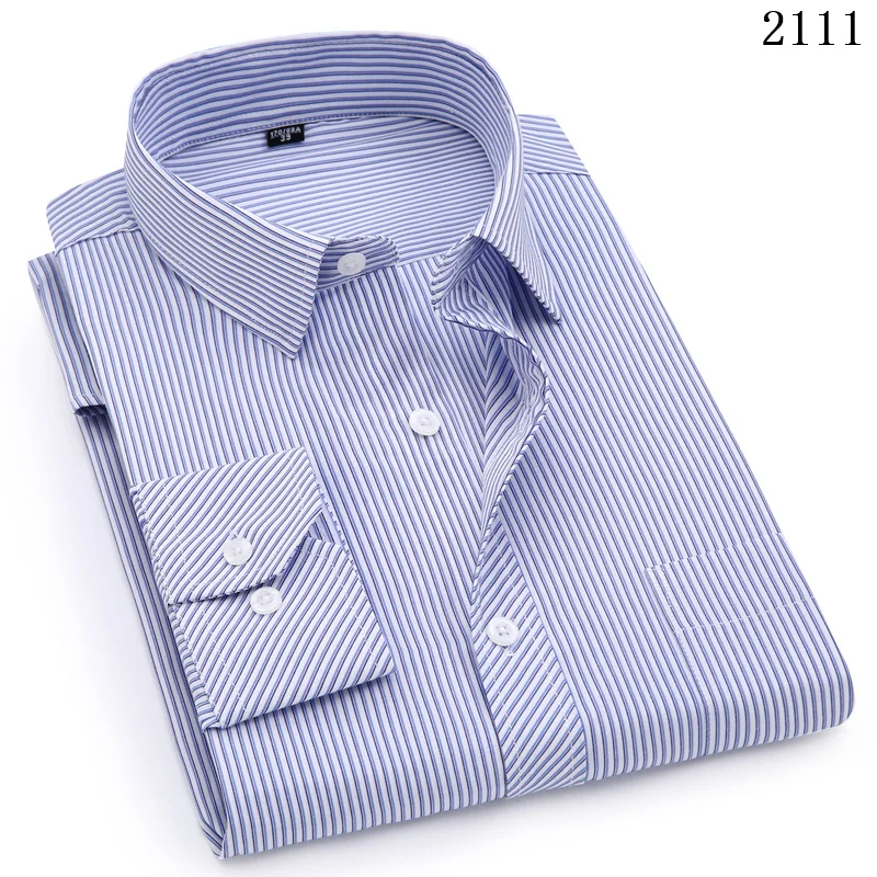 Рубашка мужская с длинным рукавом, классическая сорочка в полоску, Офисная Рабочая одежда, цвет черный белый синий, большие размеры 8XL 7XL