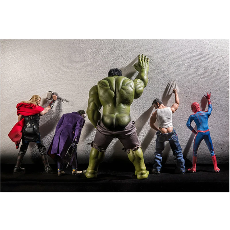 Забавная картина в виде мочи с супергероями, Картина на холсте, Мстители, Постер Marvel, принты, Халк, Человек-паук, украшение для дома, подарок для детей, декор для комнаты
