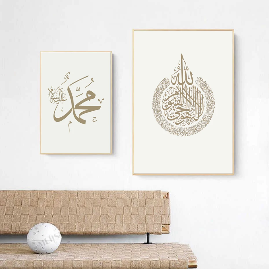 Исламский бежевый плакат, мусульманская цитата, холст, картина, меч...