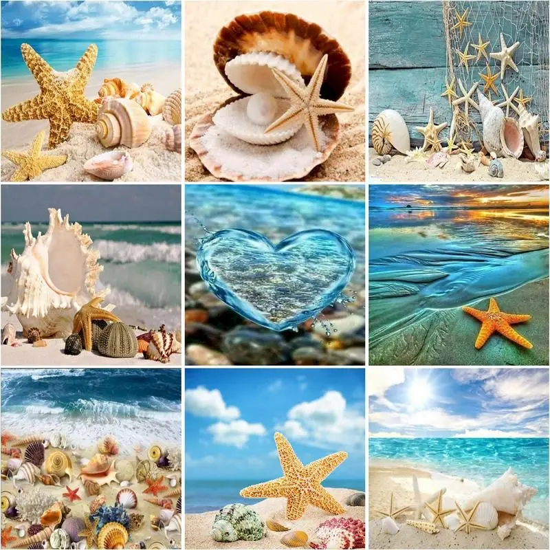 Алмазная живопись квадратная круглая Приморская вышивка ракушки наборы мозаики Пейзаж Вышивка крестиком Стразы искусство