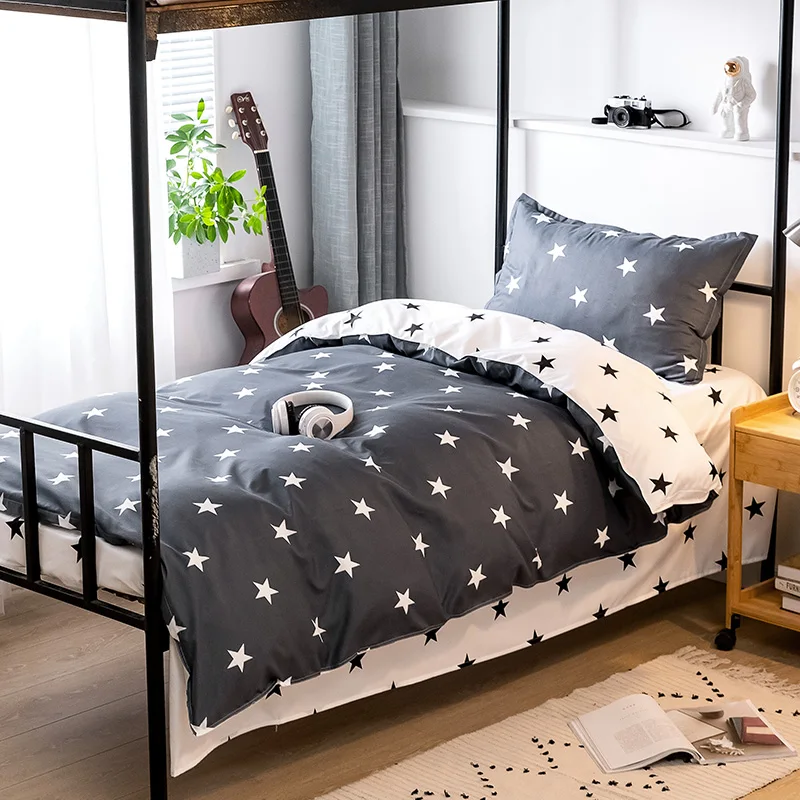 Новинка 2021 года, серое постельное белье со звездами, комплект из 2 предметов, 3/4 шт., домашняя льняная весенне-летняя одежда для сна, постельное белье для мальчиков и девочек, пододеяльник, современный плоский лист
