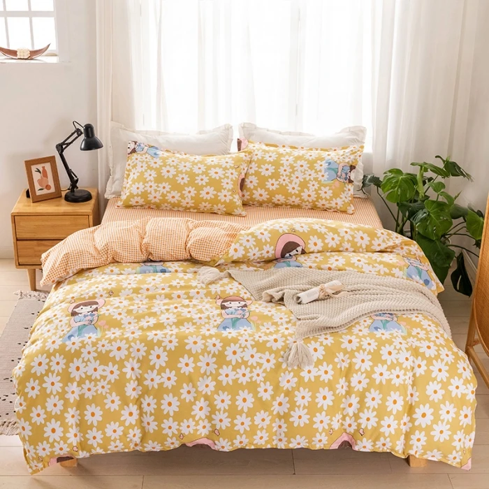 Серые постельные принадлежности сердце набор 2020 осень пасторальный Стиль Пододеяльник Набор Новый мультфильм постельное белье 3/4 шт комплект кровать AB сторона утка домашняя кровать